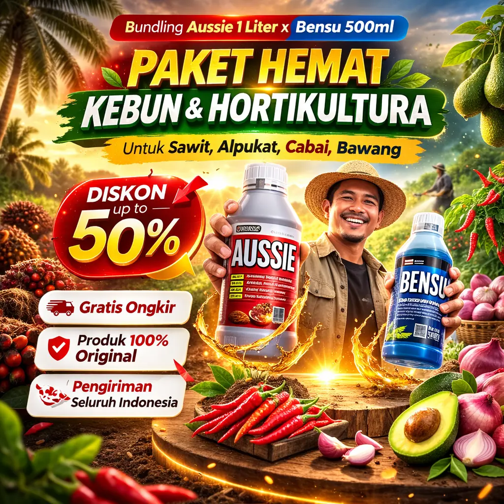Kombinasi AUSSIE 1 Liter untuk perlindungan akar perkebunan dan BENSU 500ml untuk hortikultura seperti cabe & bawang.