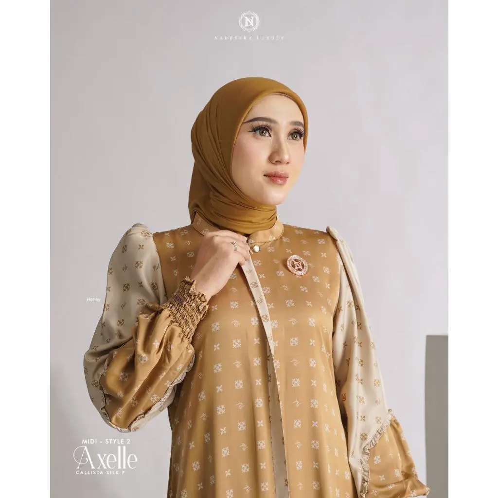 berbahan _Callista Silk Premium_ yang sangat nyaman, adem. Modelnya simple namun looknya super mewah! Cocok banget untuk outfit daily, outfit hangout atau semi formal My Nadheera!