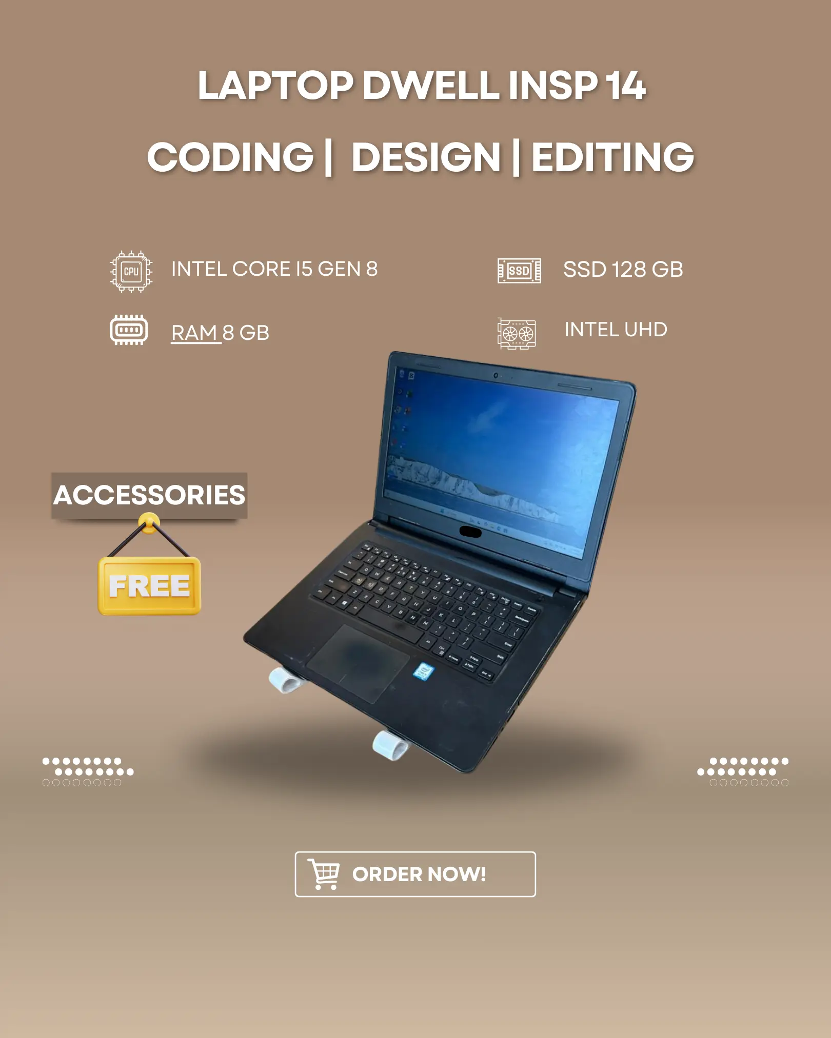 Laptop DWELL INSPI 14 INTEL CORE I5 GEN8 RAM 8GB SSD 128GB adalah pilihan yang tepat untuk penggunaan sehari-hari. Dengan spesifikasi yang handal, laptop ini memberikan performa yang cukup dan tampilan yang nyaman.