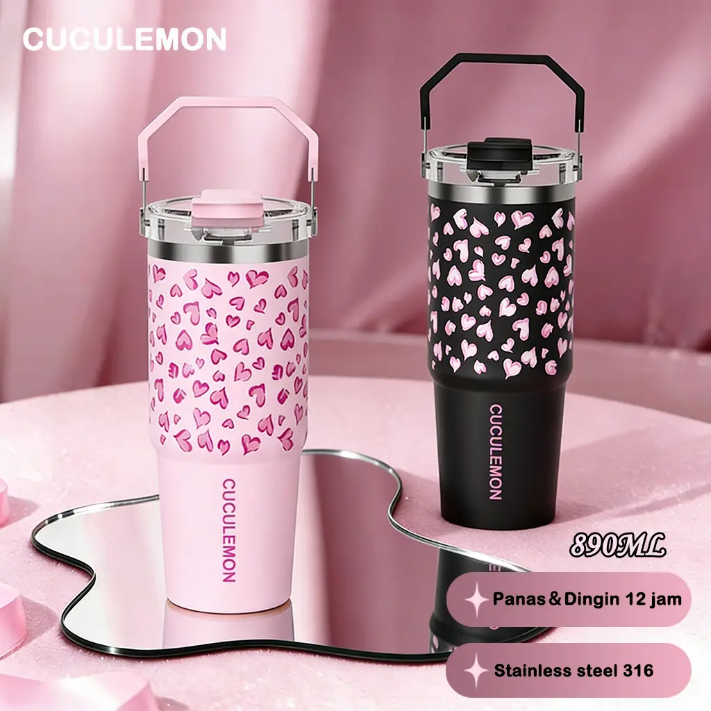 CUCULEMON Tumbler Mobil 890ml - 3D Hati & Gelombang Gradien