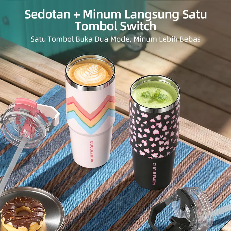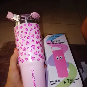 Tumbler aesthetic favorit para cewek! CUCULEMON hadir dengan desain 3D yang super gemoy dan kapasitas jumbo 890ml buat temani harimu seharian penuh.