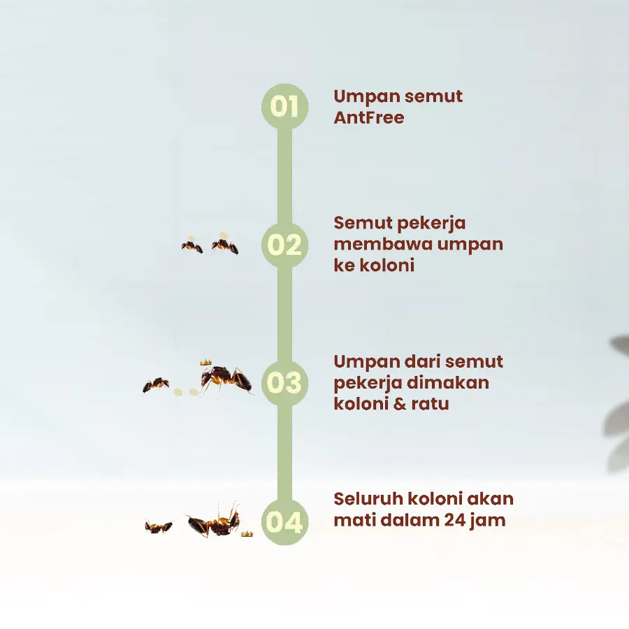 ·Tidak perlu diaduk, semut akan membawa racun kembali ke sarang sendiri