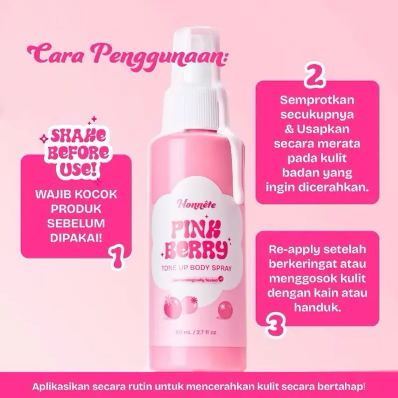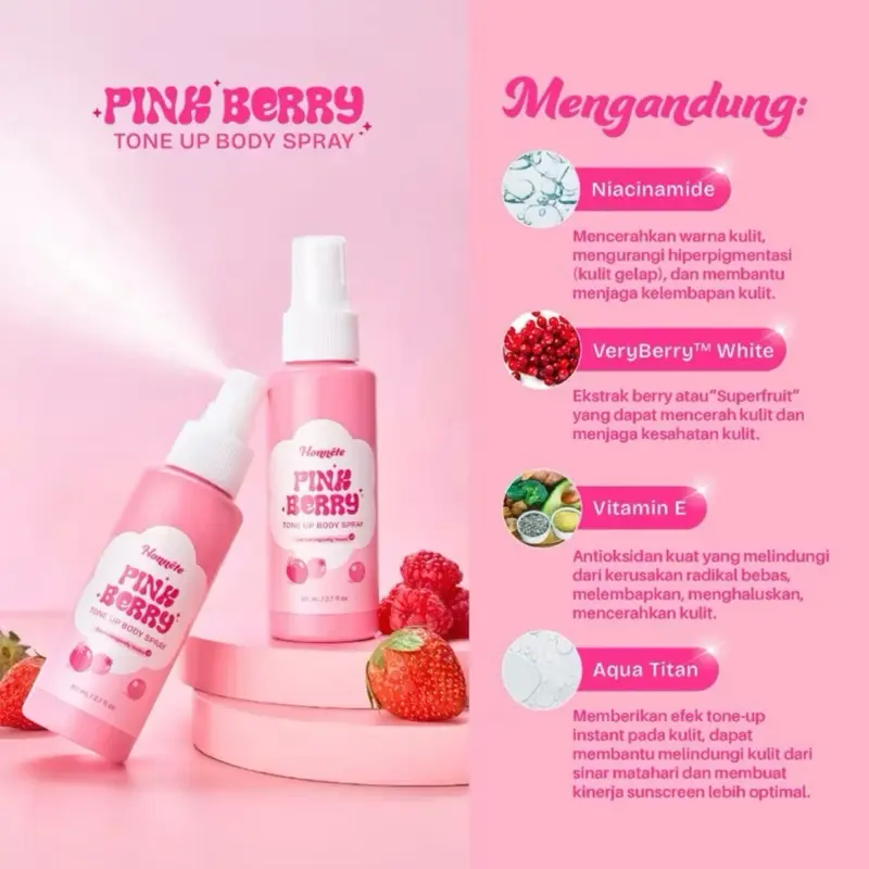 [READY] HONNETE PINK BERRY TONE UP BODY SPRAY MENCERAHKAN KULIT NIACINAMIDE VITAMIN E MELEMBABKAN KULIT