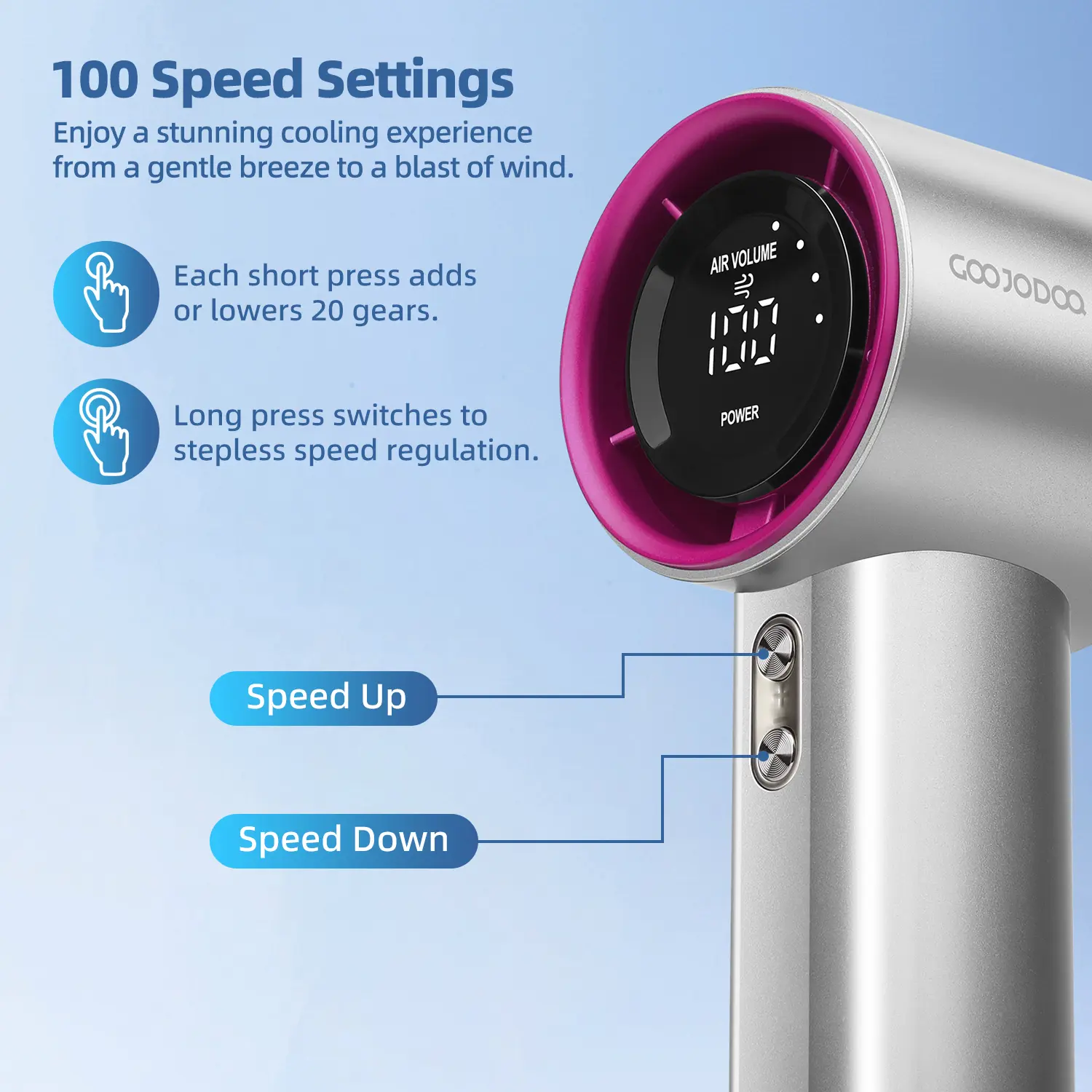 GOOJODOQ GFS001 + FREE GIFT FS079 High-speed Portable Handheld Fan 4000MAH Mini kipas Strong Wind 100 Gear Wind Speed kipas angin Digital Display Adjustable Turbo kipas tangan untuk olahraga luar ruangan dan pendinginan cepat