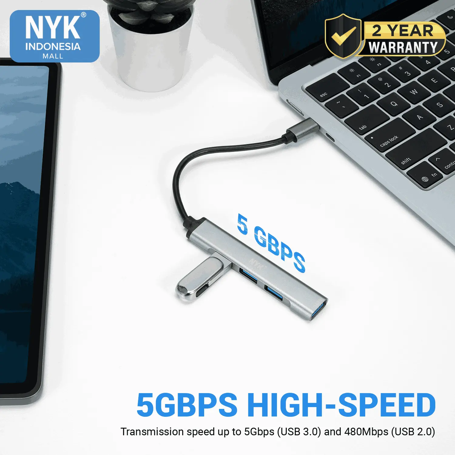 NYK V7 adalah USB Hub 4-port yang dirancang khusus untuk perangkat modern seperti laptop, Macbook, tablet, hingga smartphone yang menggunakan konektor Type-C. Dengan kombinasi port USB 3.0 dan USB 2.0, Anda bisa menghubungkan berbagai perangkat sekaligus tanpa hambatan.
