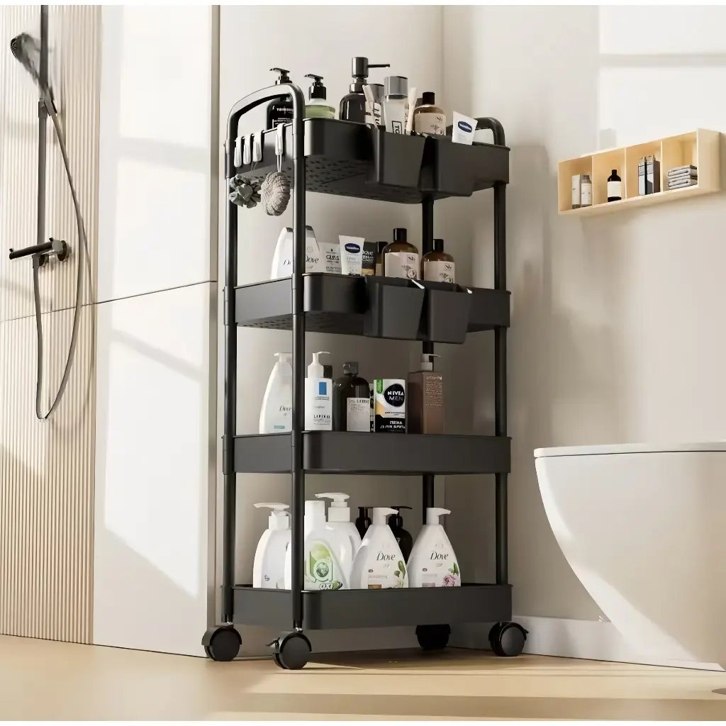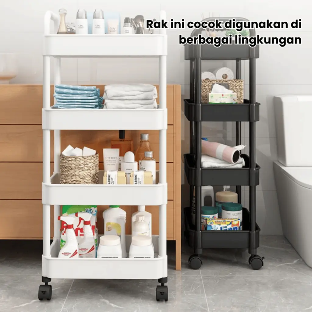 Pegangan ganda troki kokoh, dorong mudah, roda licin dan senyap, fleksibel dipindahkan, cocok di ruang tamu, dapur, kamar mandi.