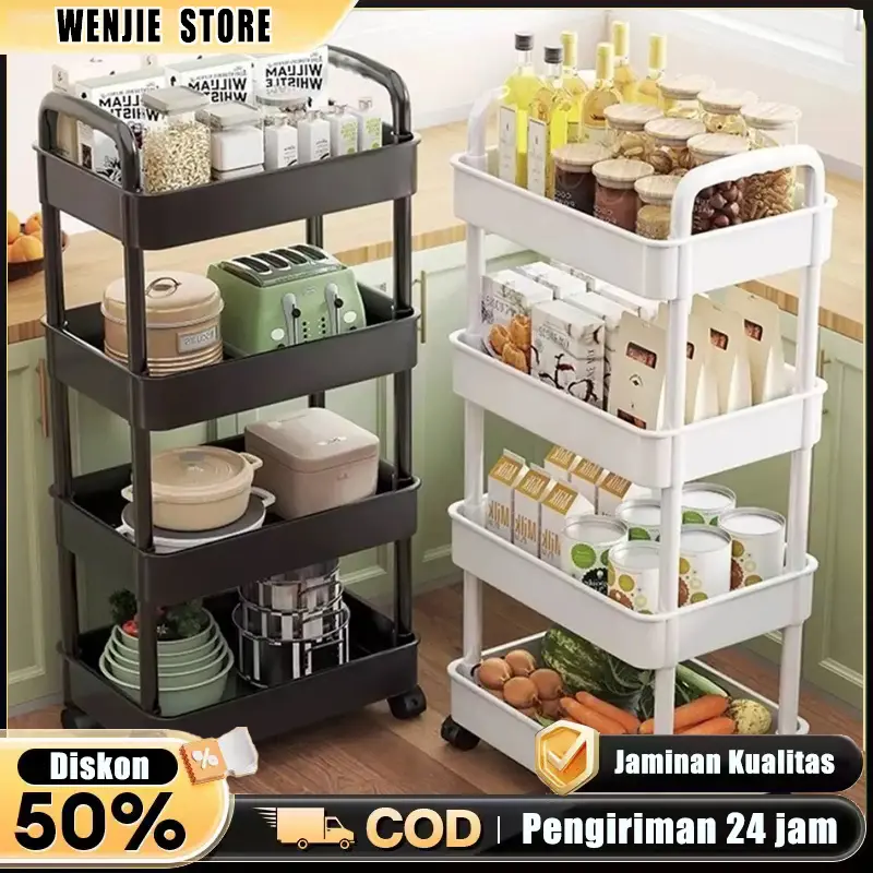 Desain pegangan ganda aman, dorong tidak selip, rak kokoh daya dukung bagus, sangat praktis merapikan barang.