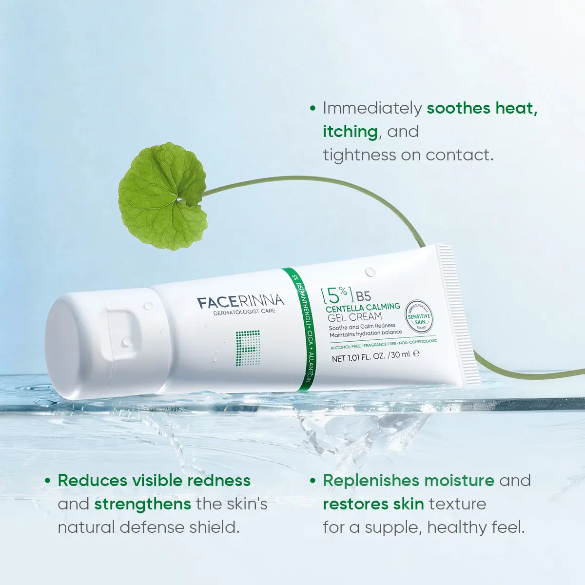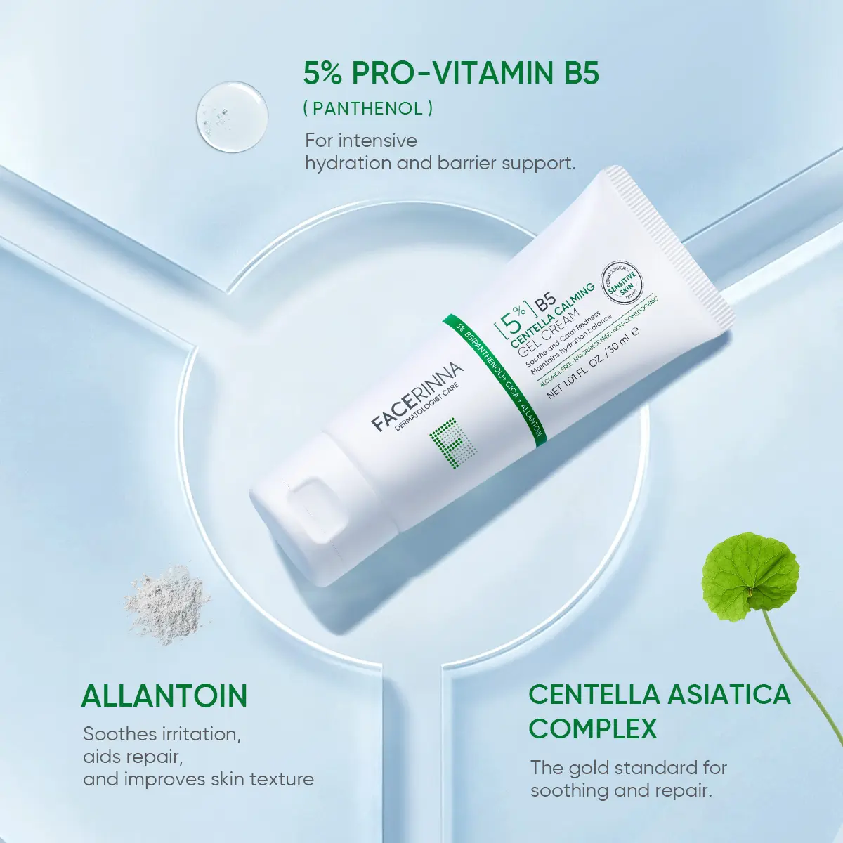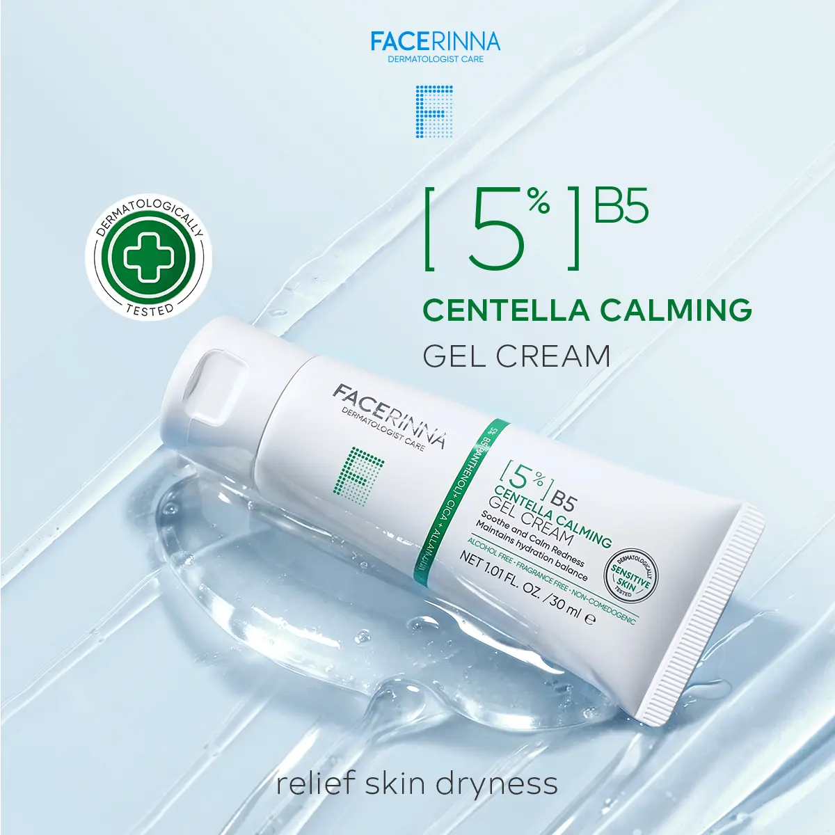 【New】FACERINNA 5% B5 Centella Calming Gel Cream 30ml | Bisa Digunakan sebagai Repair Cream | Night Cream untuk | Kulit Sensitif-Tekstur Ringan , Membantu Menenangkan Kulit Kemerahan, Gatal, dan Sensasi Kering