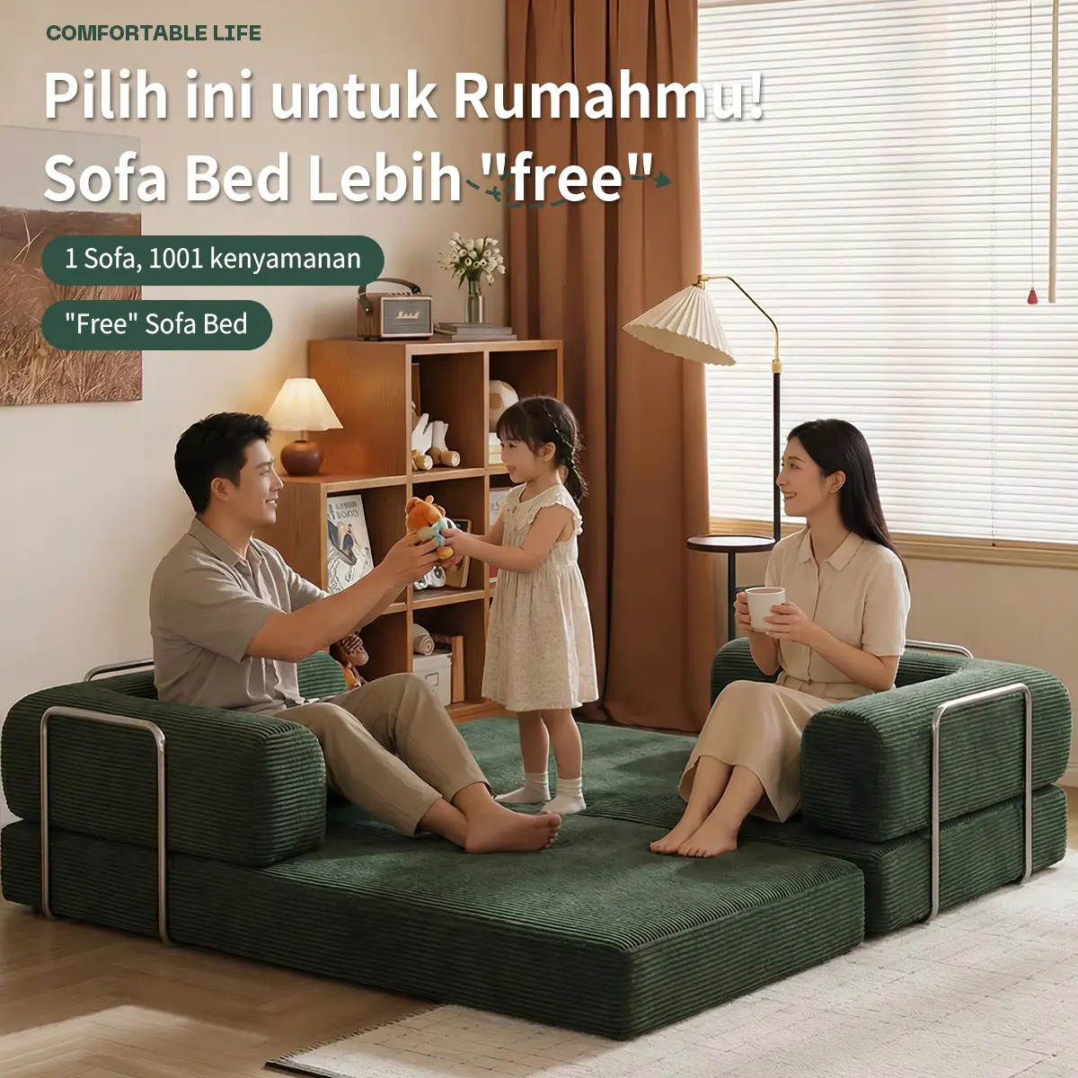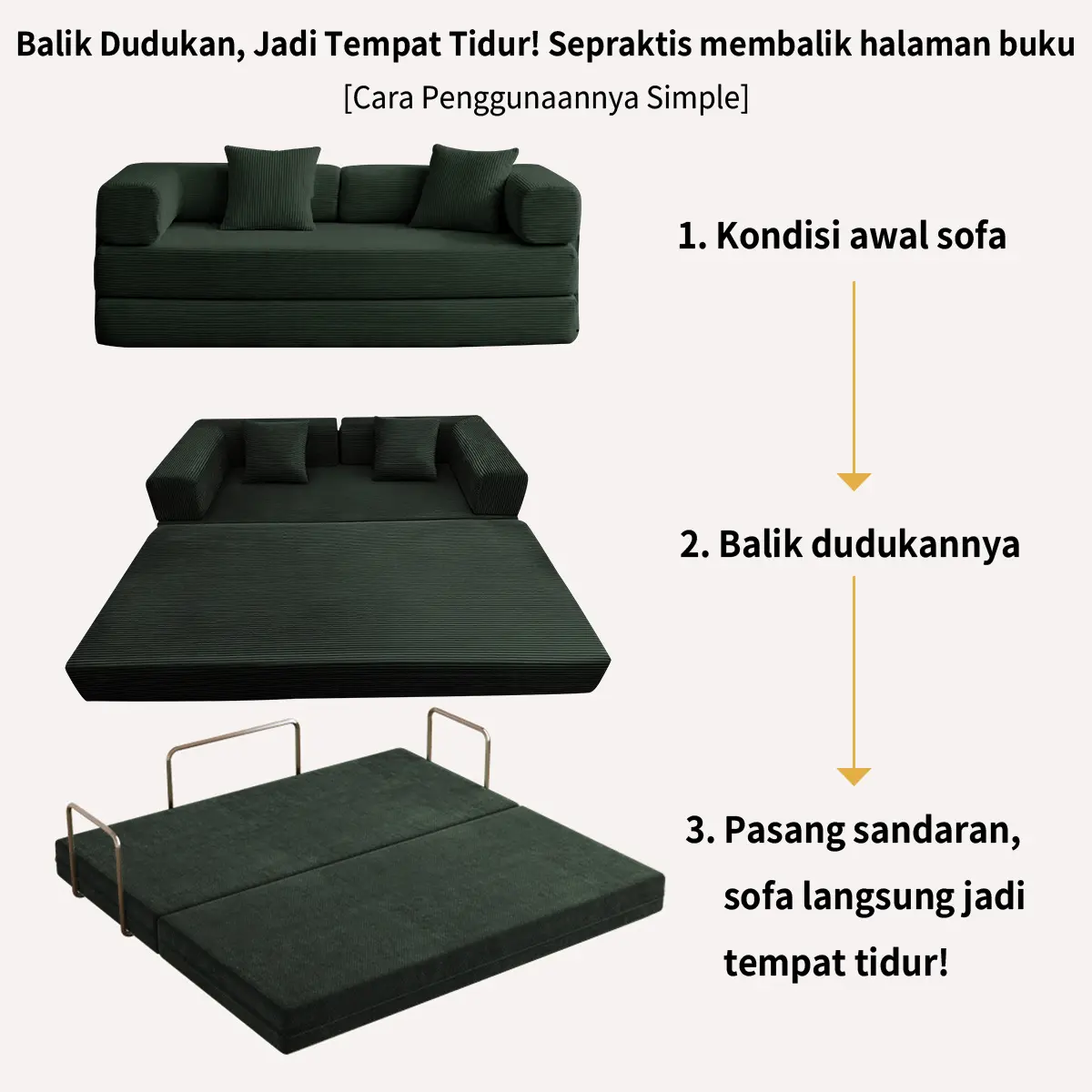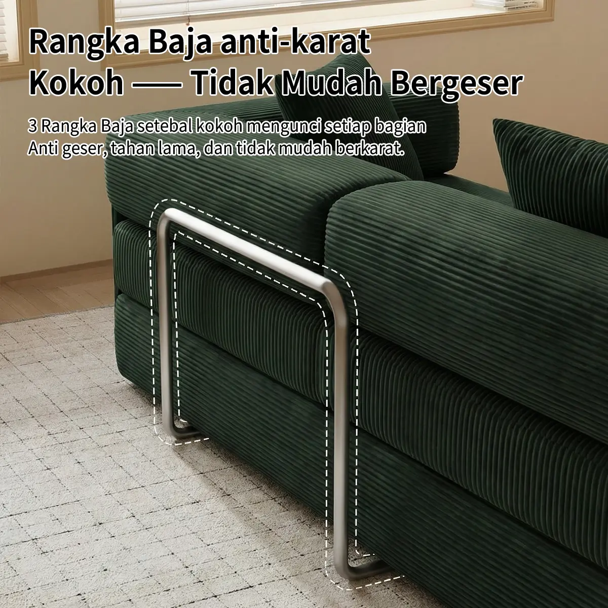 Ukuran ideal: 150/180/200cm Panjang Sandaran melengkung dan armrest minimalis, cocok untuk ruang kecil