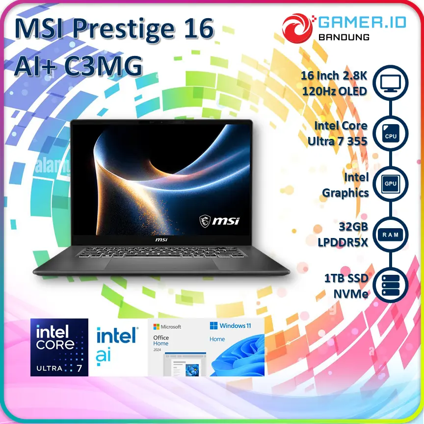 MSI Prestige 16 AI+ C3MG Core Ultra 7 355 32GB 1TB 16 Inch 2.8K OLED 120Hz 100% DCI-P3