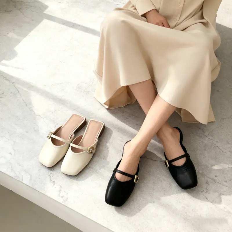 Sepatu Slip On Wanita Model Tali Gesper Elegan Untuk Kantor & Hangout Sepatu Mules Wanita Kekinian 2026