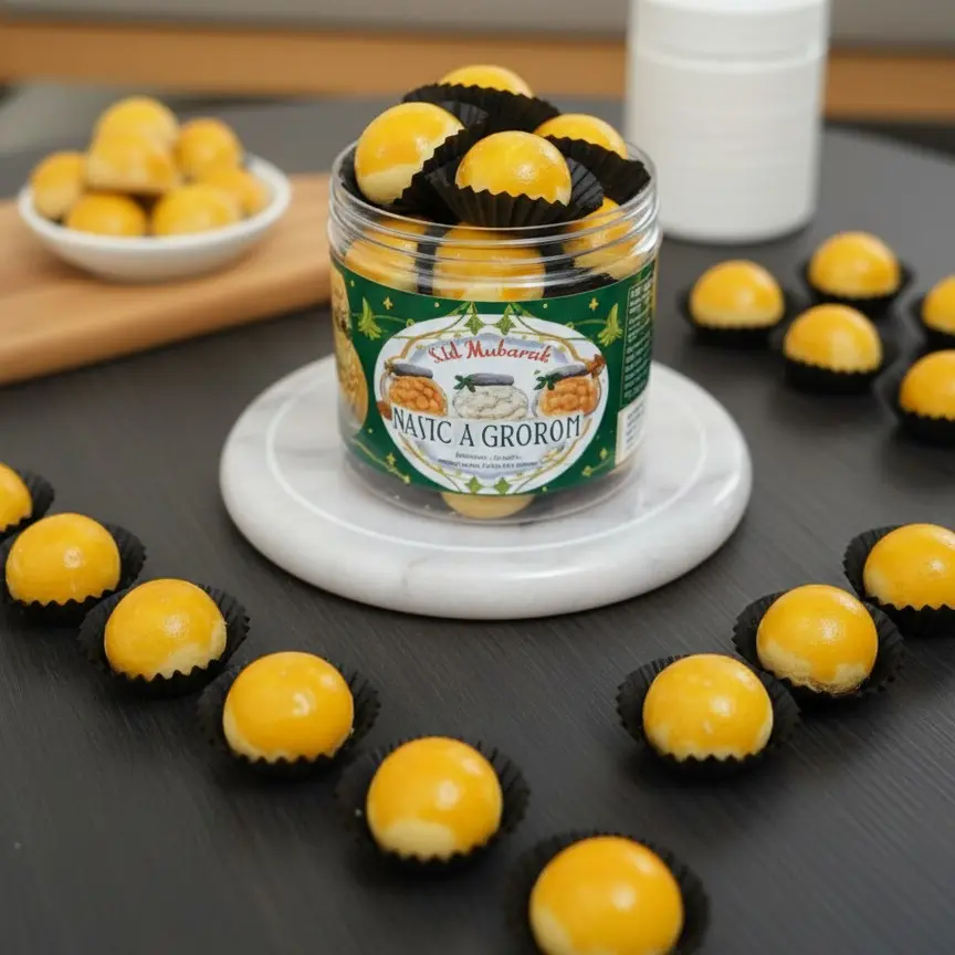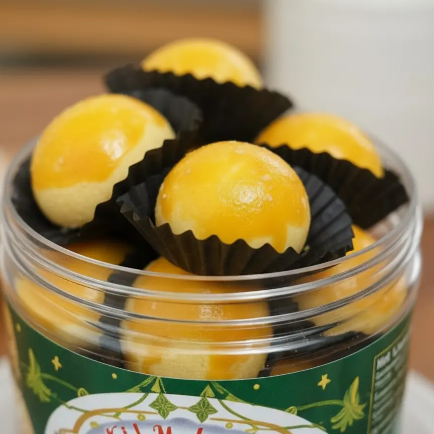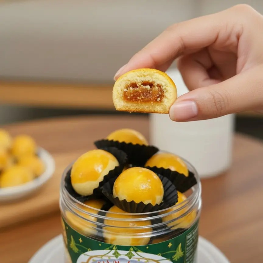 Nikmati kelezatan kue nastar premium dengan isian selai nanas asli yang legit dan wangi. Dibuat dari bahan pilihan, tekstur lembut lumer di mulut, manisnya pas, tidak enek – cocok untuk sajian tamu, hampers Lebaran, atau stok camilan keluarga.