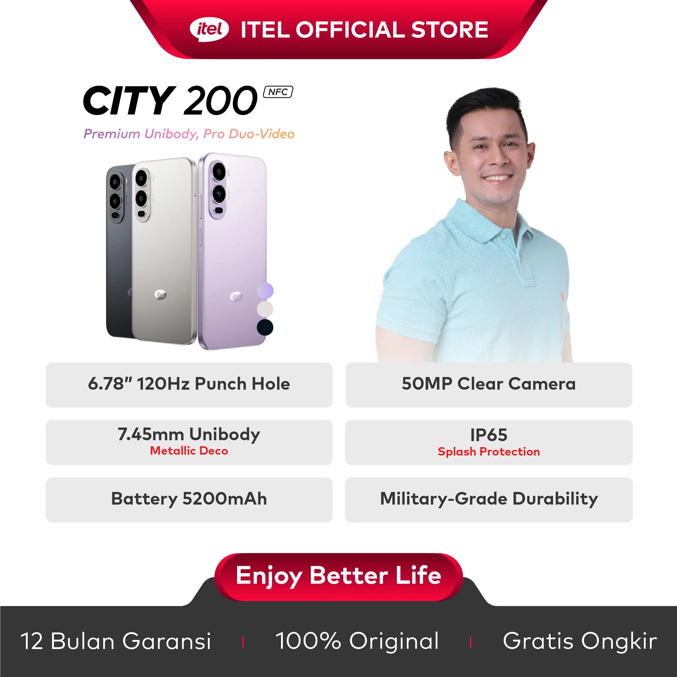 Fitur NFC memudahkan transaksi digital dan akses harian, sementara UltraLink Free Call hingga 2km memastikan komunikasi tetap lancar tanpa jaringan seluler. Dipadukan dengan DTS Audio, 4.5G Network, dan jaminan kelancaran hingga 48 bulan, itel City 200 adalah pilihan ideal untuk gaya hidup aktif dan modern.