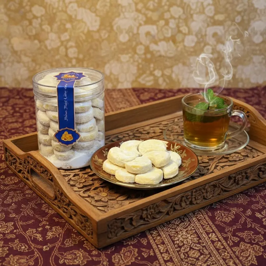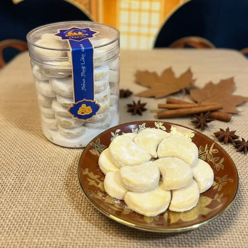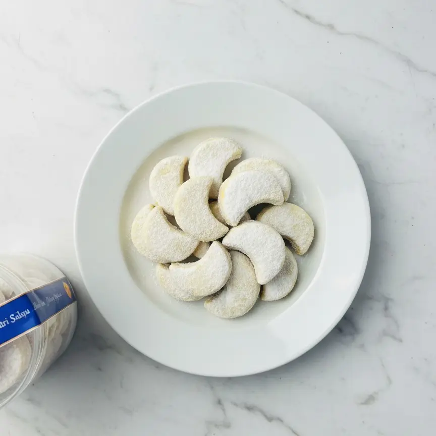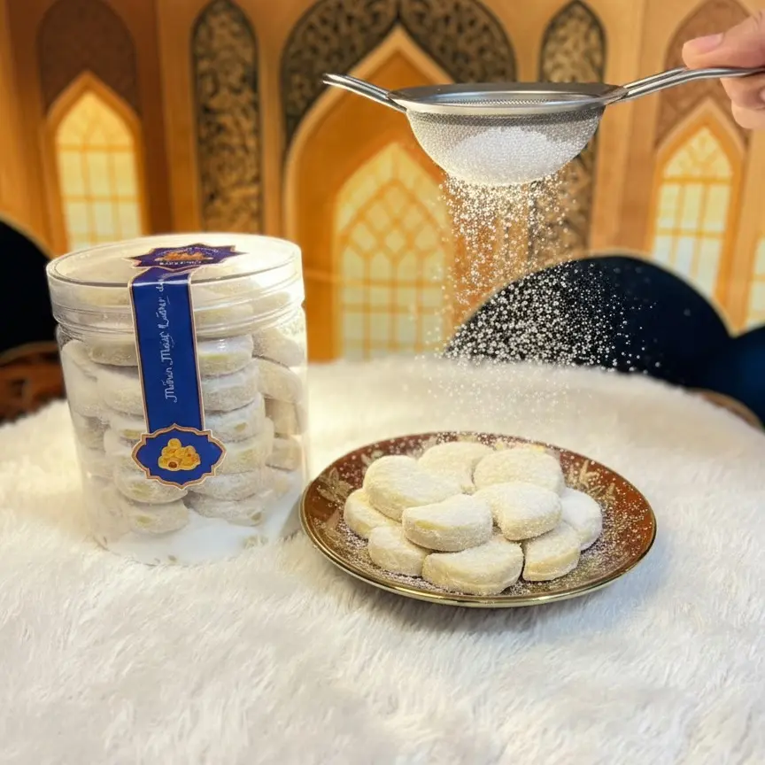 Rasakan lembutnya kue putri salju premium dengan taburan gula halus melimpah yang lumer di mulut. Teksturnya lembut, tidak keras, manisnya pas dan tidak bikin enek. Cocok untuk sajian tamu spesial maupun camilan keluarga di rumah.