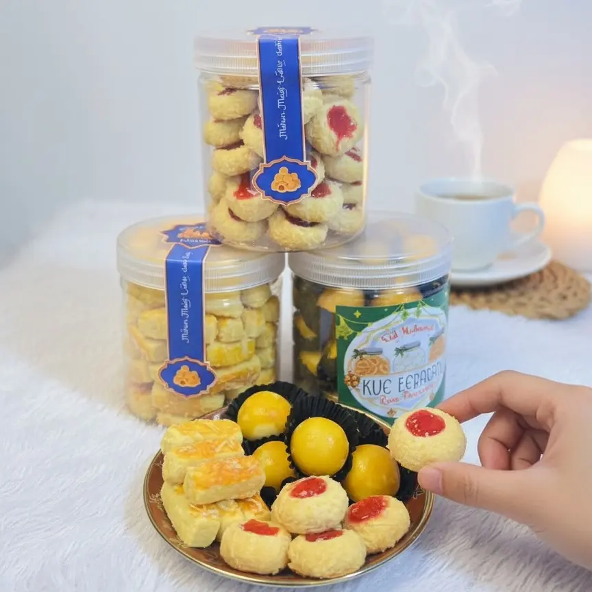 Semua dikemas rapi dalam toples 600ml, aman untuk pengiriman dan tampil cantik di meja tamu.