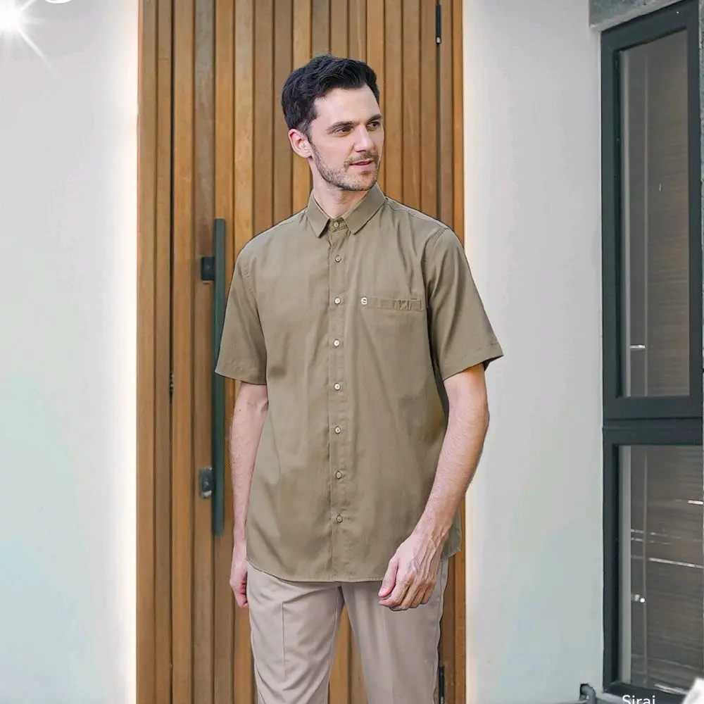 - Kemeja lengan pendek dengan bukaan depan menggunakan kancing