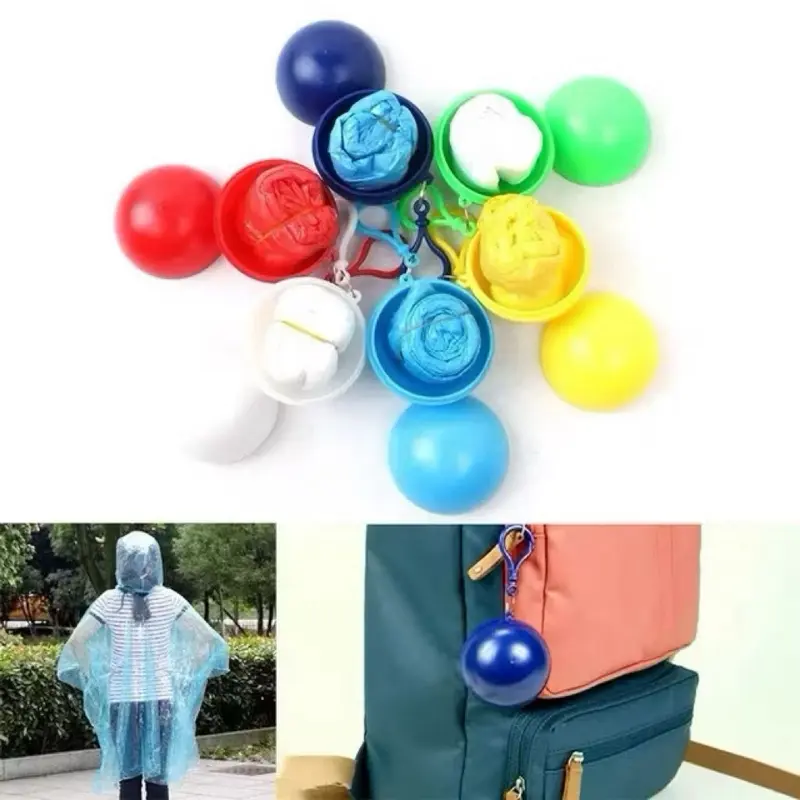 Jas Hujan plastik portable emergency berbentuk bola gantungan yg pada umunya dipakai hanya beberapa kali. Cocok untuk keadaan darurat. Jas hujan ekonomis yang sesuai untuk dibawa berpergian / kegiatan outdoor / berkemah.