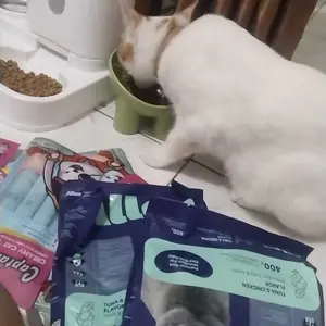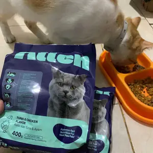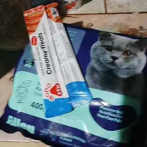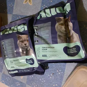 Pakan kucing yang oke meski baru coba mereka suka sih next beli lagi cuma memang kemasannya kecil per 400gr biasanya beli 1kg an
