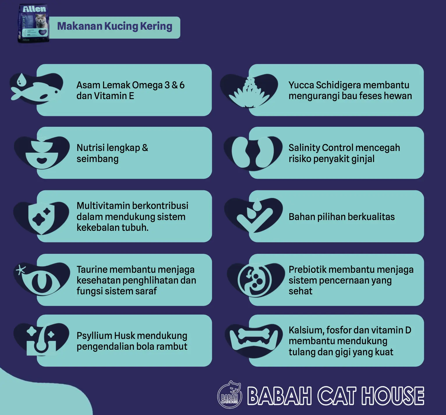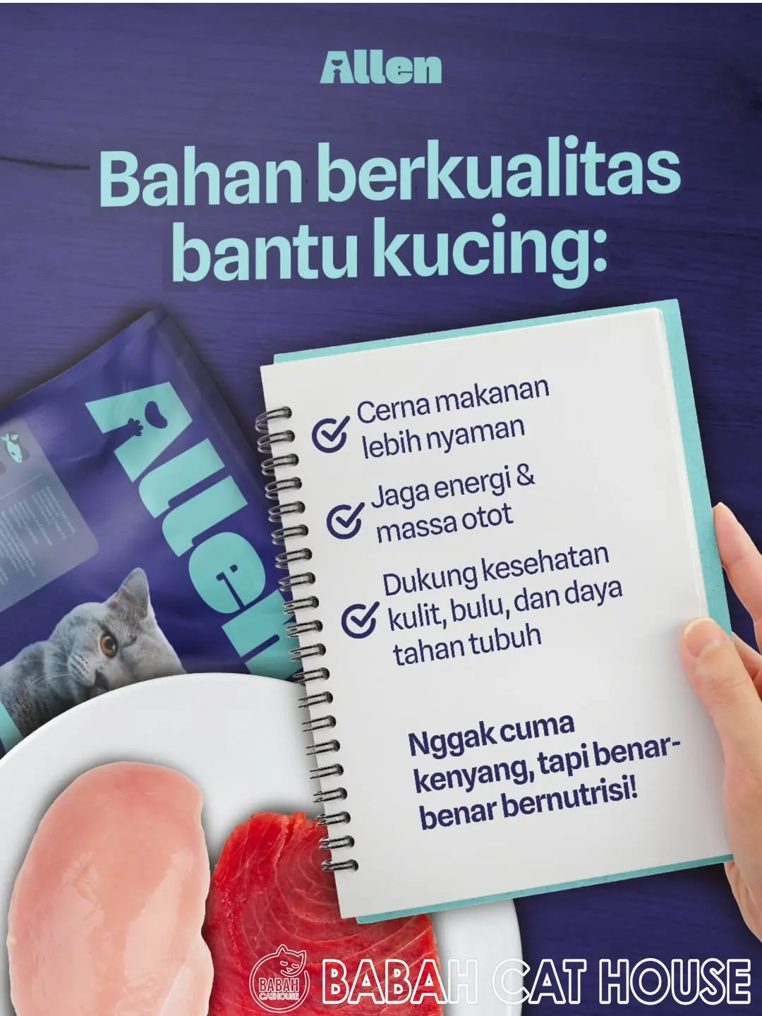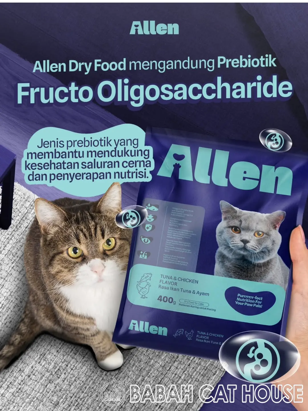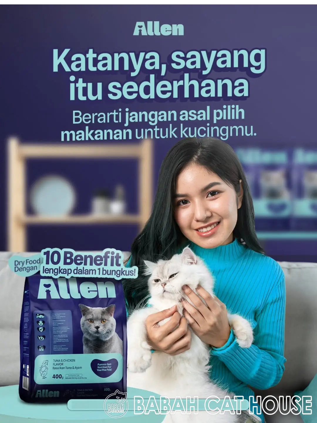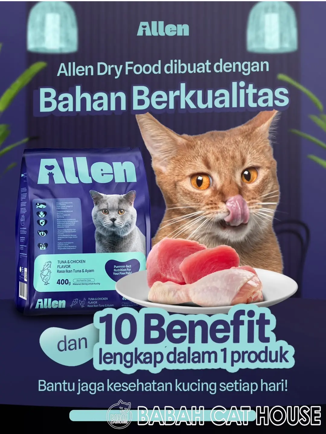 Allen cat food product by Aremium Ahmad is a Premium Pet Food Brand that offers both dry and wet food options, known for using high-quality, sometimes "human-grade," ingredients like real tuna and chicken. The brand emphasizes balanced nutrition with no artificial colors, flavors, or preservatives.