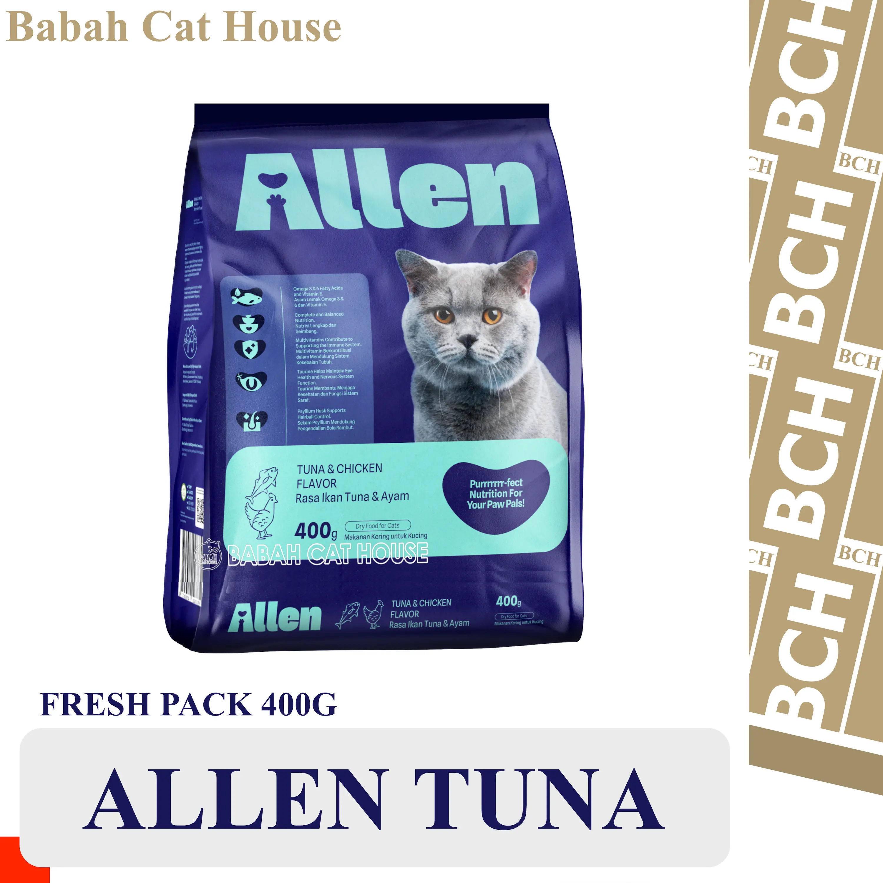 ALLEN CAT FOOD HALAL 400g makanan kucing alshad ahmad rasa tuna chicken untuk adult premium promo