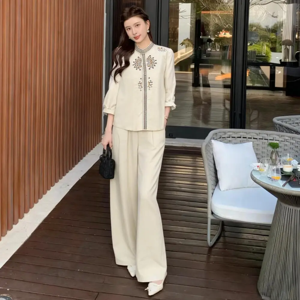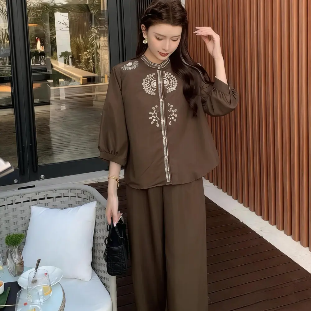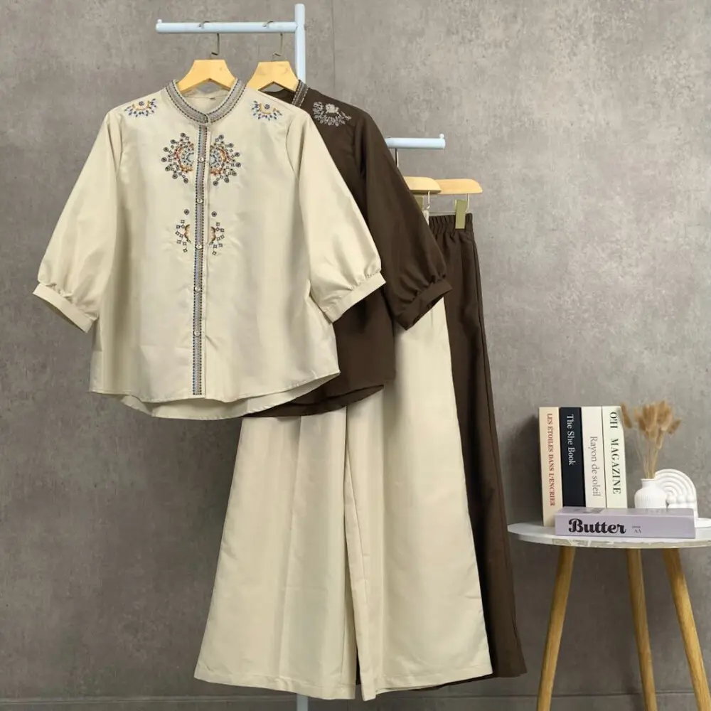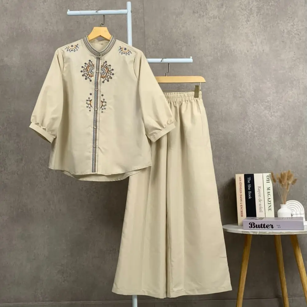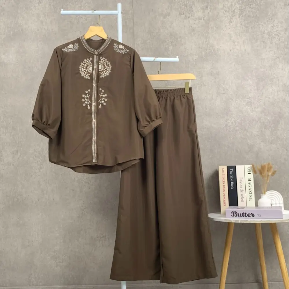 5. FADFAD Setelan dua potong atasan dan celana longgar dengan bordir.
