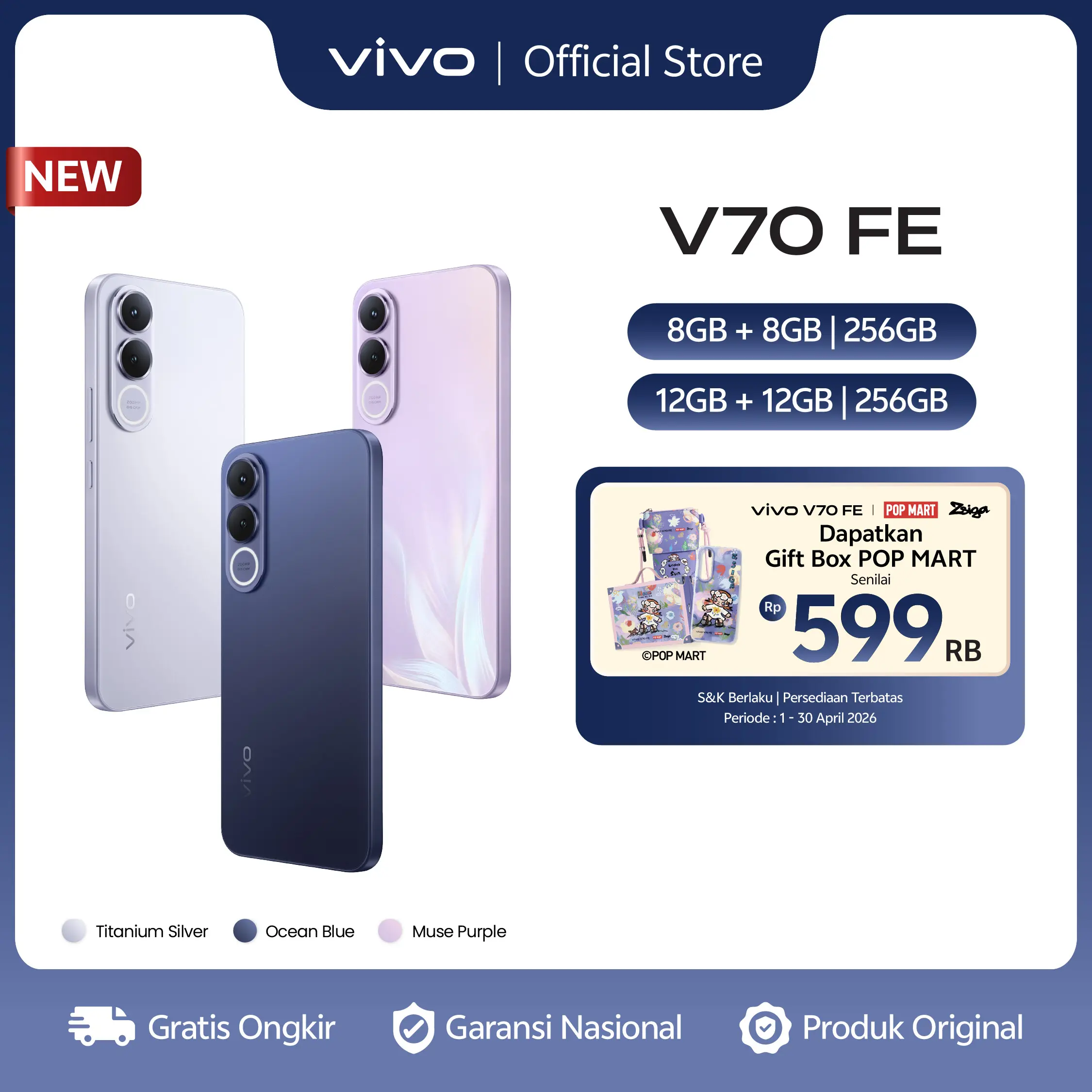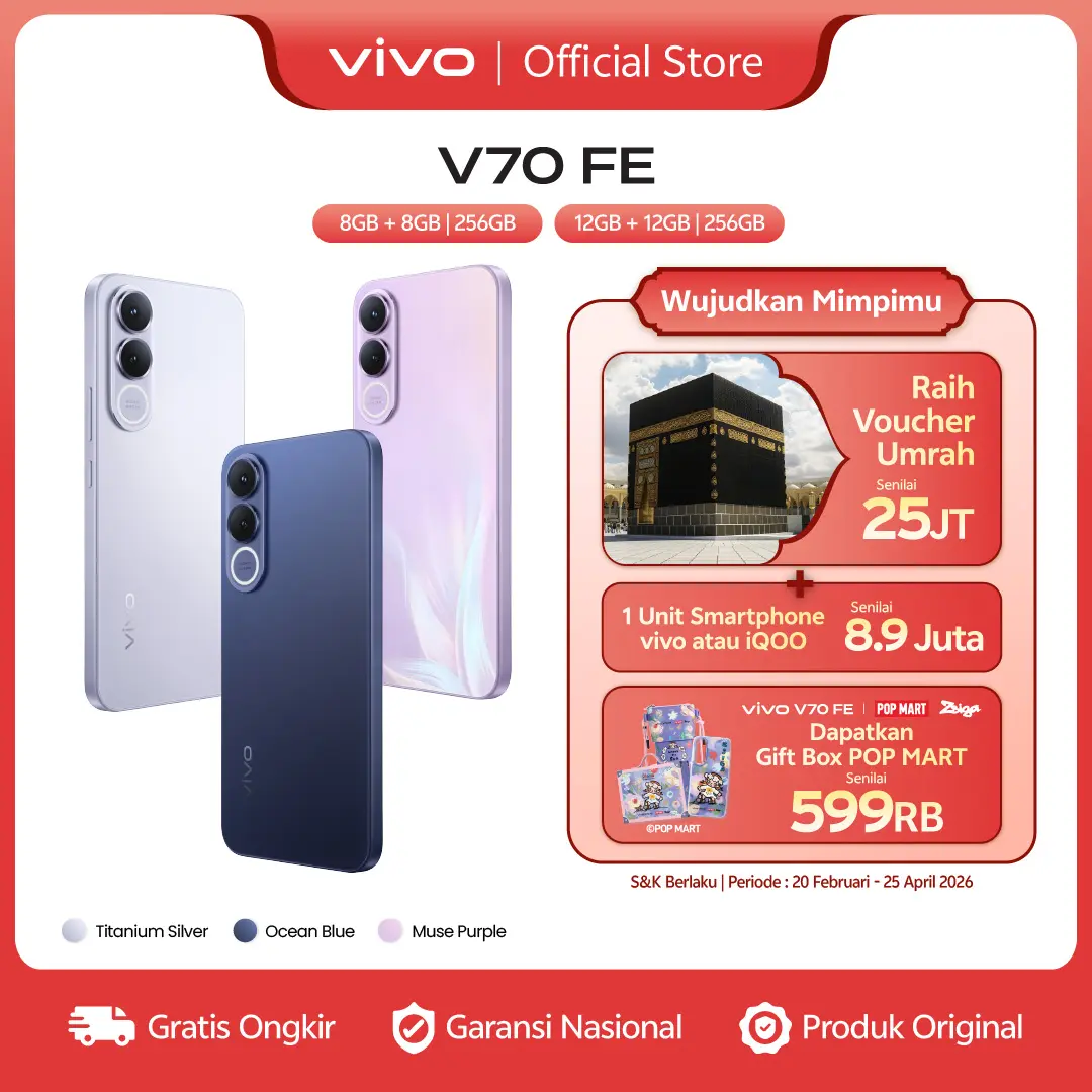 • Warna: Ocean Blue, Muse Purple, Titanium Silver