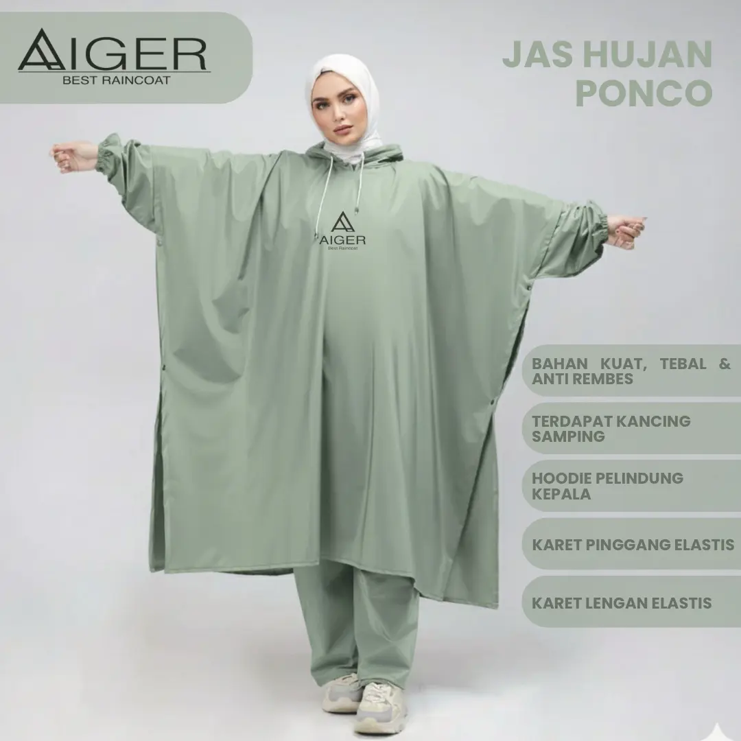 AIGER Jas Hujan Ponco & Stelan Ponco Celana Mantel Hujan Kelelawar Ukuran Jumbo adalah pilihan tepat untuk perlindungan hujan Anda.
