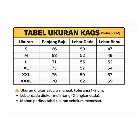·3XL: Bahu 54 cm, Dada 59 cm, Panjang 74 cm