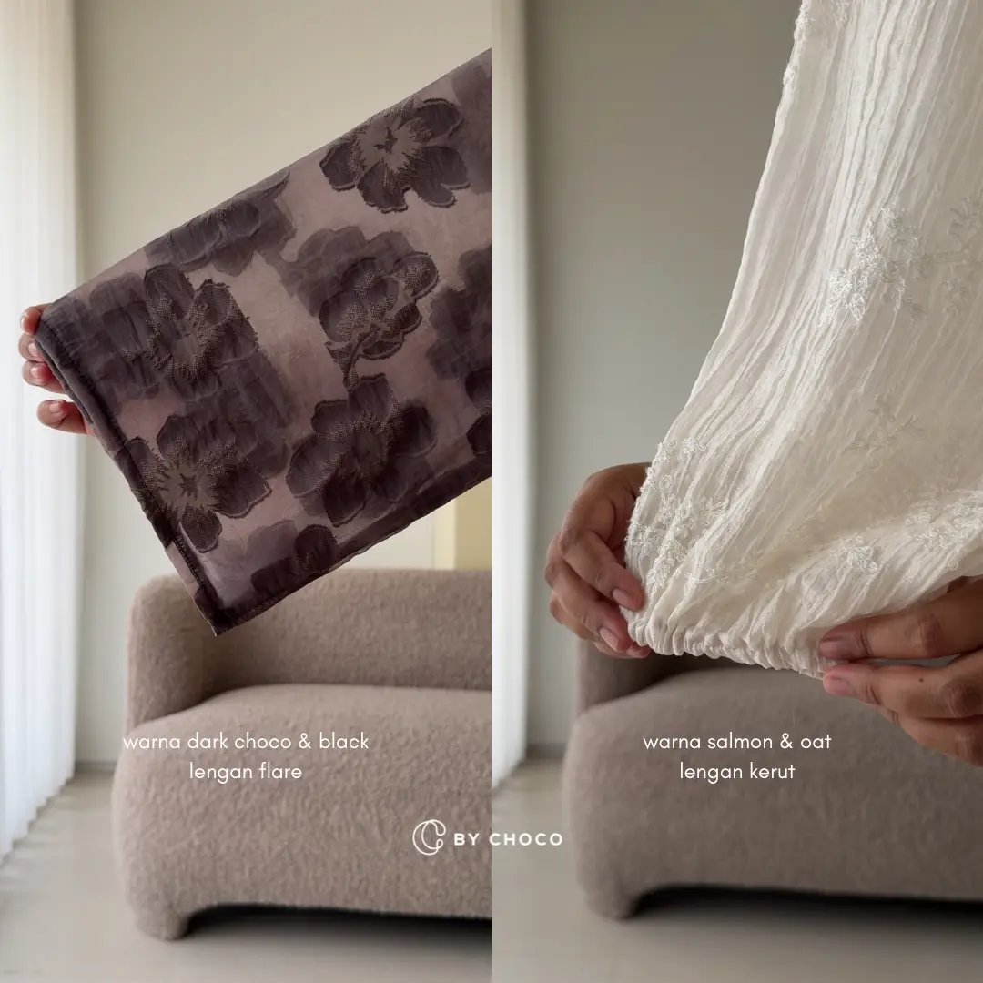 Potongan lengan melebar di bagian bawah (buat warna dark choco & black)