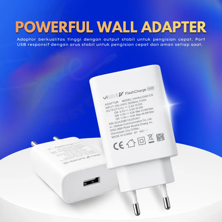 Nikmati pengalaman pengisian daya yang lebih cepat, stabil, dan aman dengan Charger V!V0 44W Fast Charging Original. Dirancang dengan teknologi pengisian daya cepat, charger ini mampu mengisi baterai perangkat Anda secara efisien tanpa membuat perangkat cepat panas.