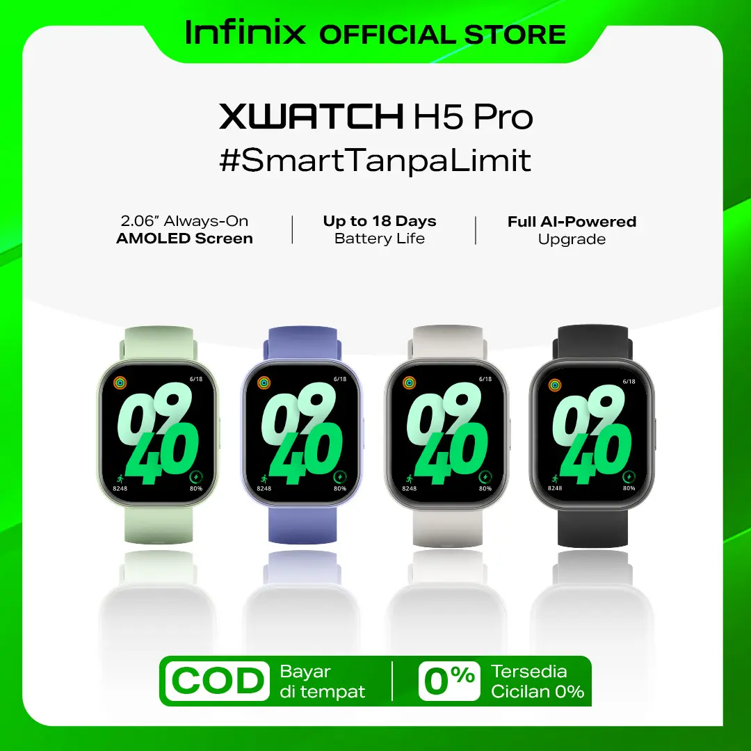 5. [Exclusive Afdhal] Infinix XWatch H5 Pro - XW5P - 2.06"" - AOD - AMOLED Screen - 350mAh - Support Clear BT Calling - AI Health & Sports - Management - IP68"