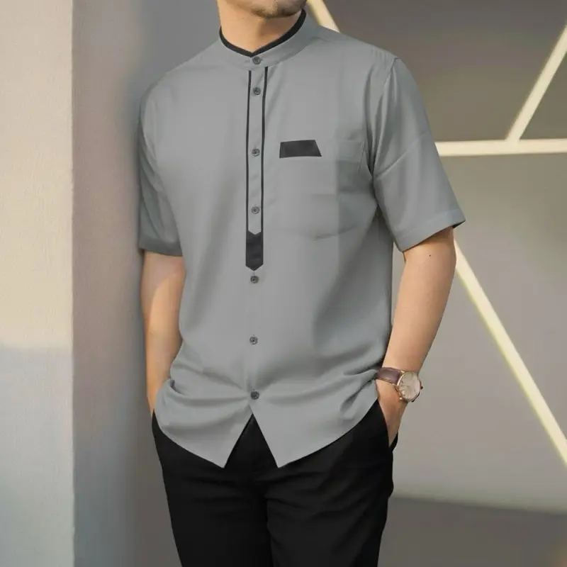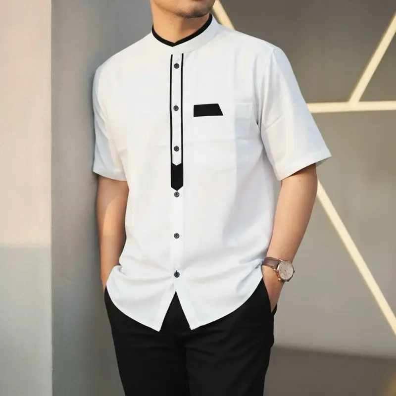Tampil rapi dan modern dengan desain minimalis yang berkelas. Koko lengan pendek ini hadir dengan potongan slim fit yang nyaman dipakai serta detail aksen kontras pada bagian placket dan saku dada yang memberikan kesan tegas dan eksklusif. Cocok digunakan untuk ibadah, acara formal, maupun aktivitas semi-formal sehari-hari.