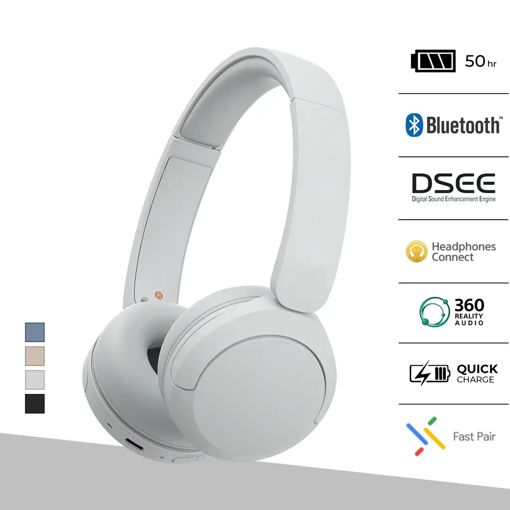 Headphone lengkap dengan fungsi penuh & kenyamanan serta daya tahan baterai super panjang, dapat digunakan untuk segala keperluan sepanjang hari!
