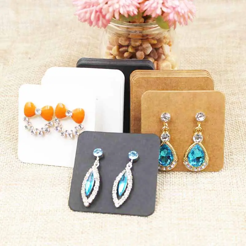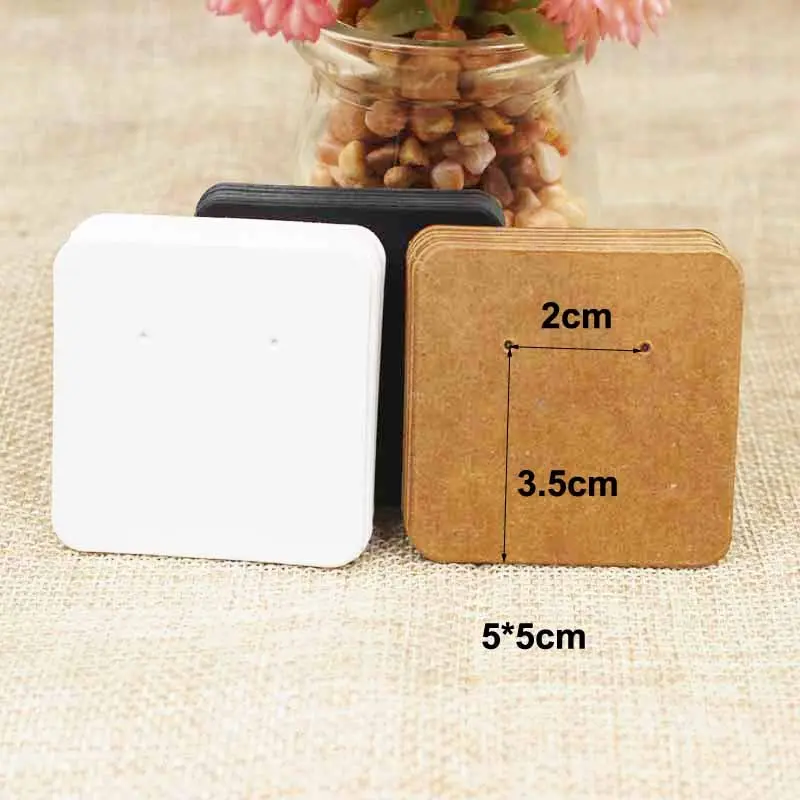 5. 100pcs DIY black paper jewelry stud earring tag card white/black/brown color cardboard small cute earring display card tag - kraft