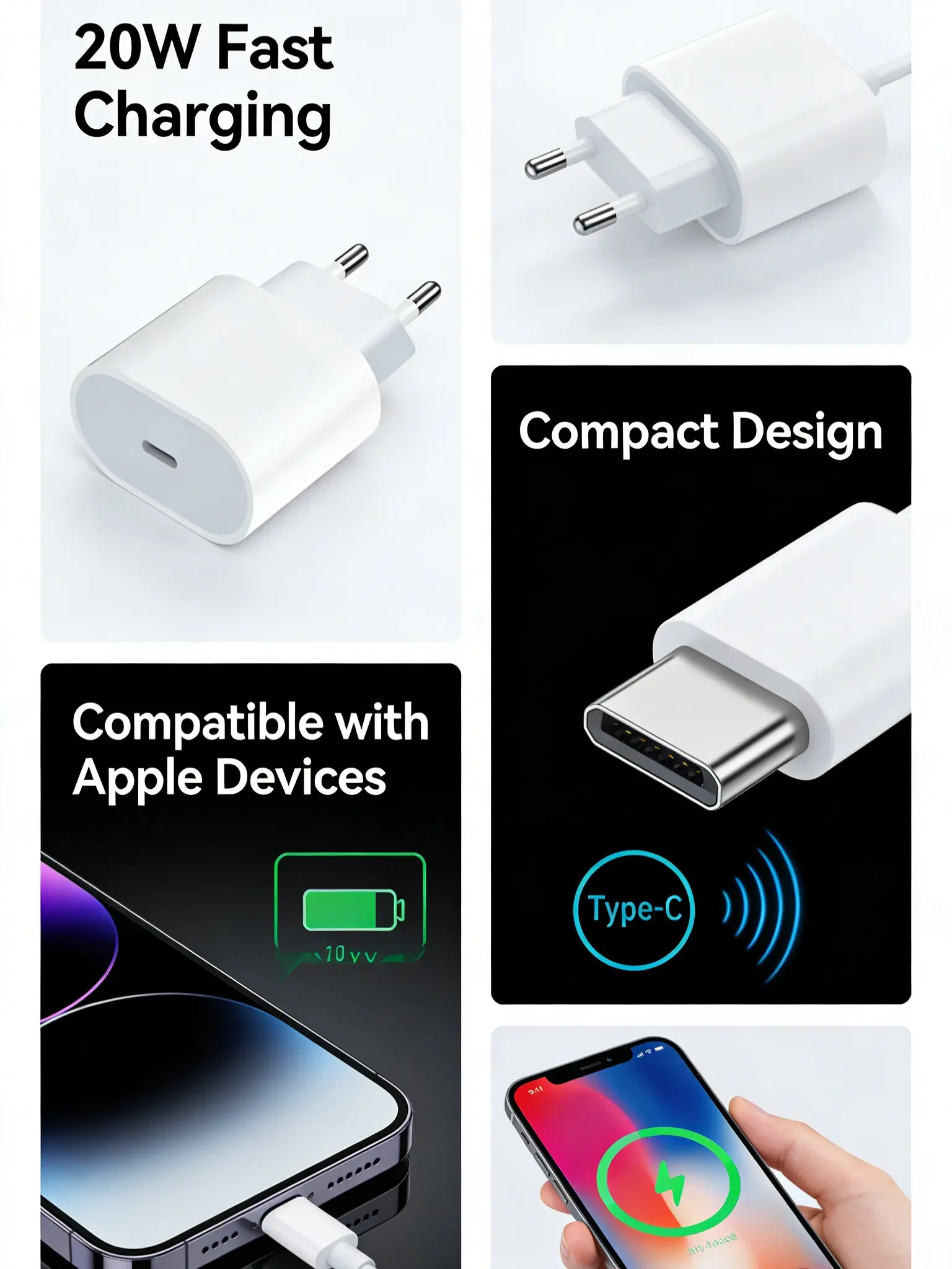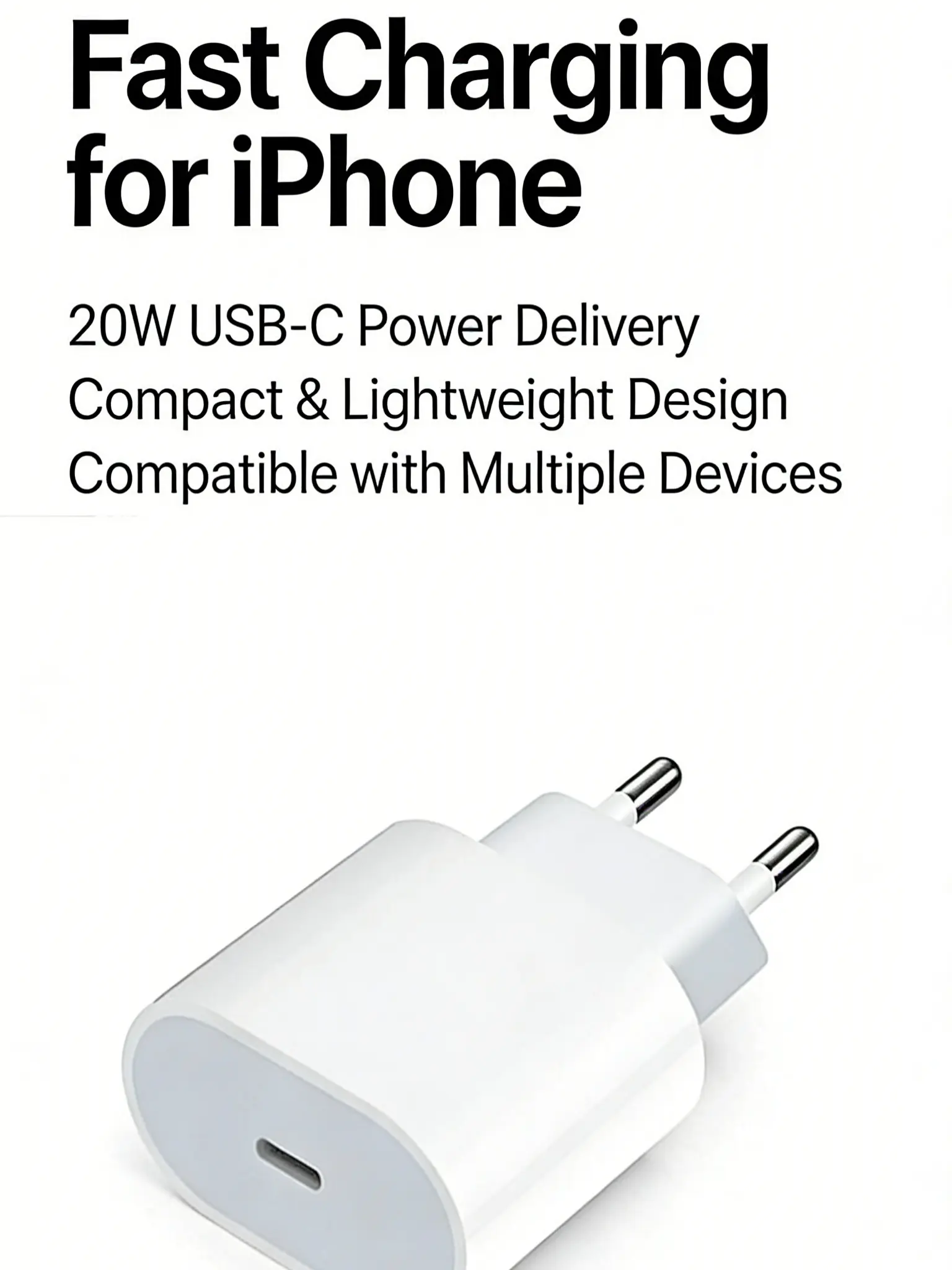 Upgrade your daily charging routine with our 20W USB-C PD Fast Charging Adapter, designed specifically for Apple devices and optimized for use across the United States. Featuring a standard US two-prong plug, this charger delivers reliable, high-speed power for your iPhone, iPad, AirPods, and other USB-C compatible devices, combining performance, portability, and safety in one sleek design.