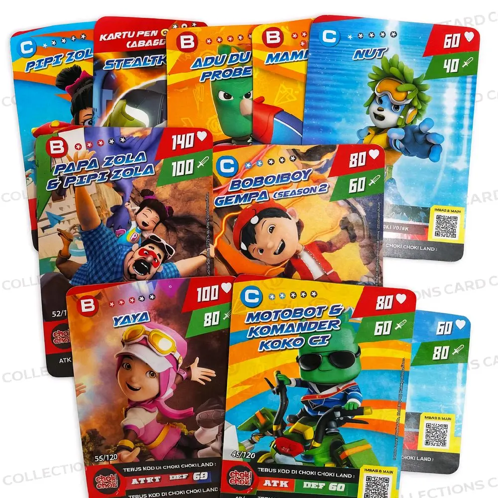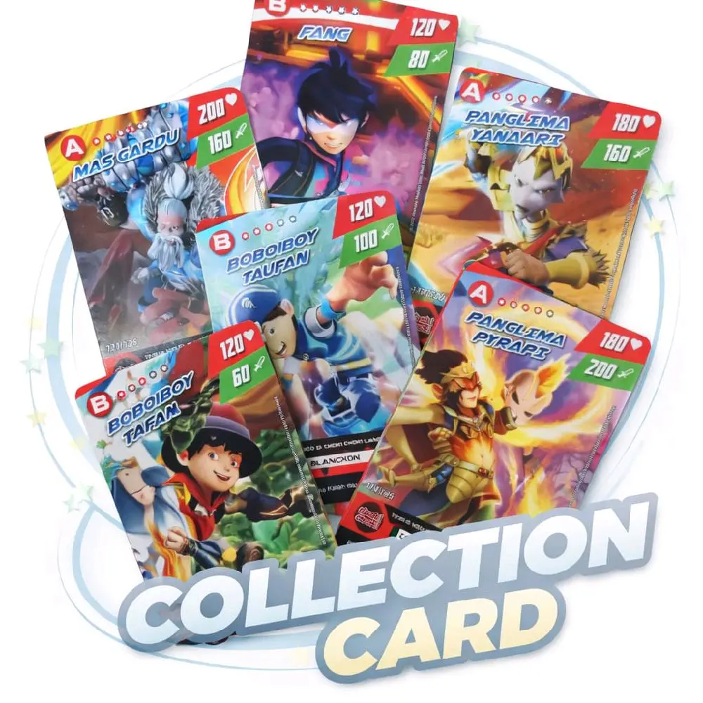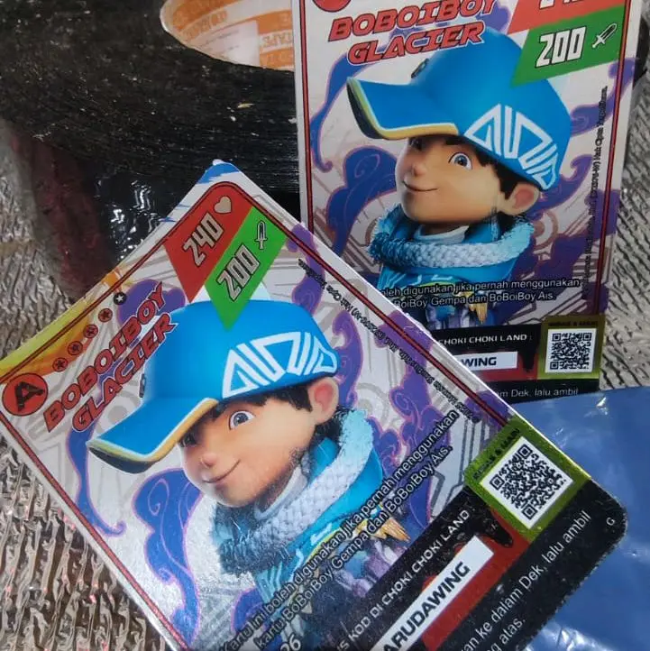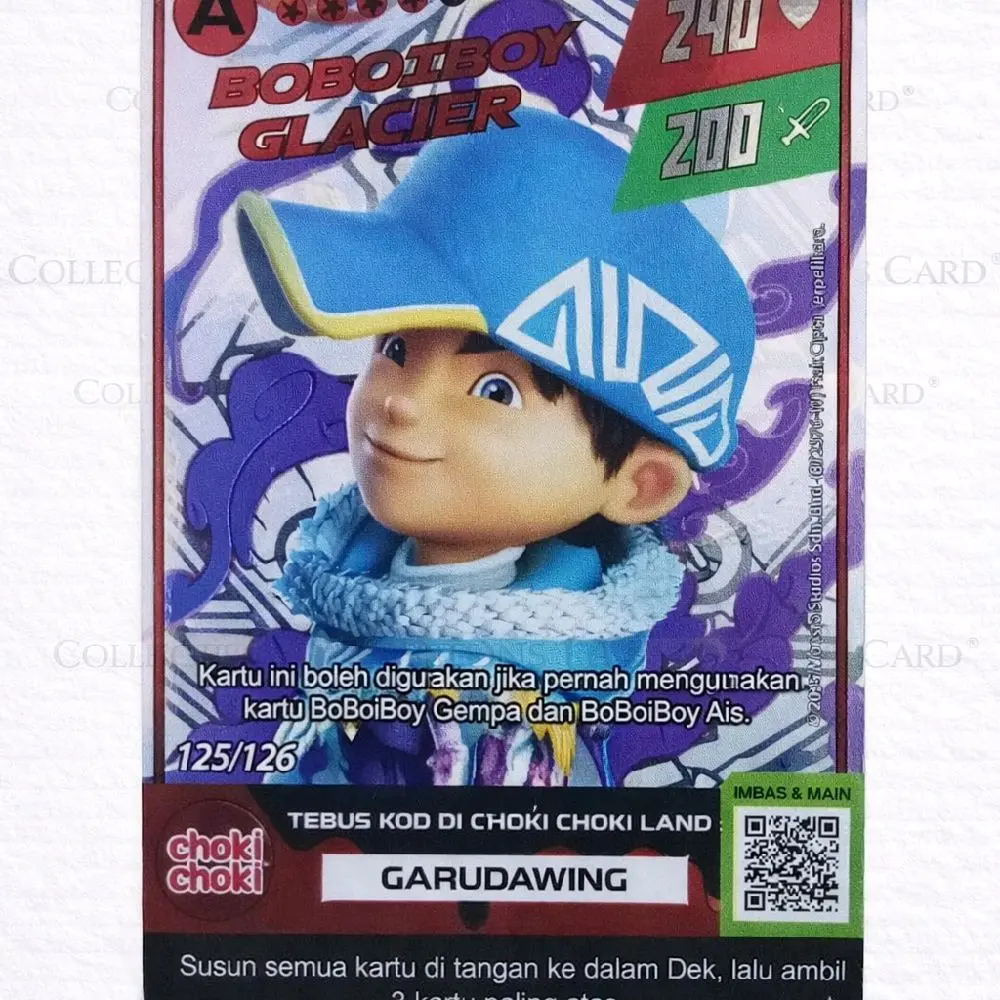 ·Kartu Boboiboy Glacier Grade A: Kartu ini adalah kartu Boboiboy Glacier Grade A dengan hologram. Tidak ada seri khusus, dengan nomor 125/126.