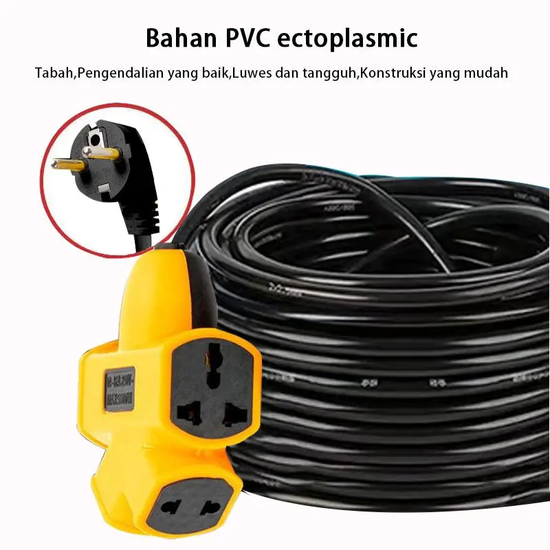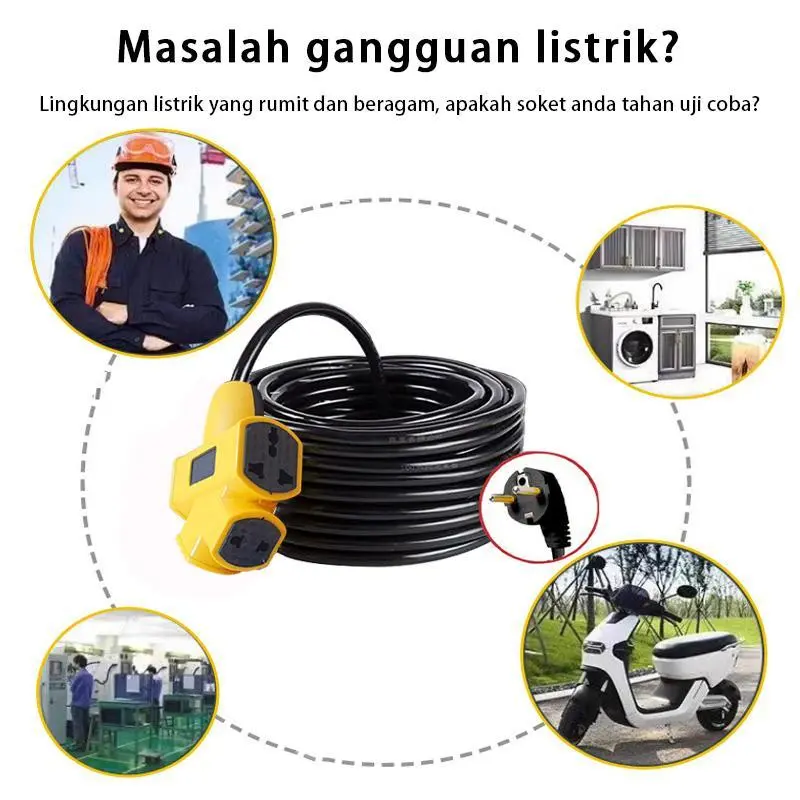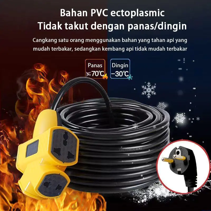 3600W Extension Cord Extra-long Plug-in Strip 10M/20M/30M Electric Vehicle Charging Extension Wire Universal Outlet 6 Gang Power Extension Cord Socket stop kontak Tersedia di Indonesia