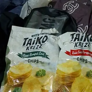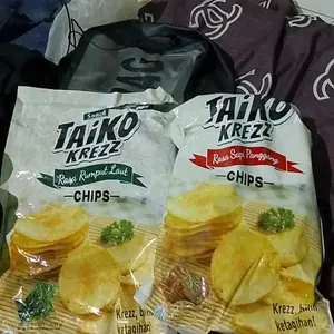 Taiko Krez Chips adalah keripik kentang crispy berkualitas dengan rasa gurih dan tekstur renyah. Dibuat dari kentang pilihan dan diproses dengan standar kebersihan yang baik, cocok untuk camilan sehari-hari. Snack ini memiliki rasa yang kuat, renyah di setiap gigitan, dan tidak mudah lembek.