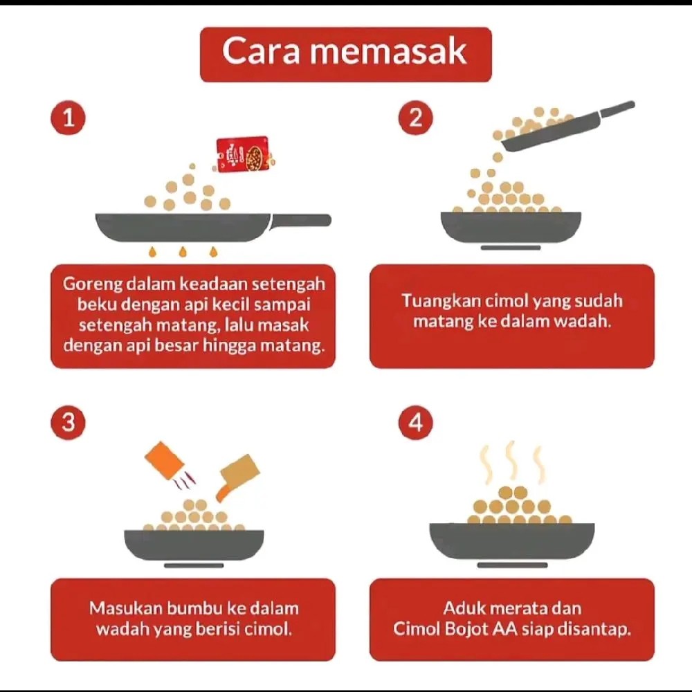 mozzarella kualitas terbaik di dalamnya, Cimol Bojot AA Mozarella ini memiliki tekstur dan rasa yang berbeda dari cimol biasa pada umumnya. Cimol Bojot AA Mozzarella memiliki tekstur yang kenyal, keju yang lumer, dan rasa gurih dari keju mozzarella.
