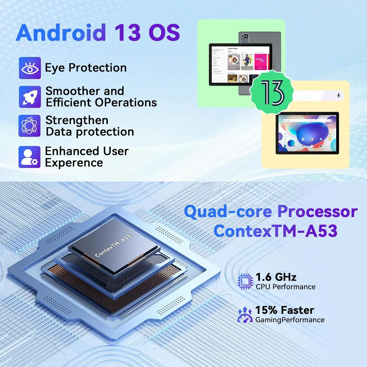 URAO MB1001 Android 13 Tablet 10 Inch 6GB RAM + 64GB ROM 128GB Expandable 5000mAh IPS Display 5G WiFi Dual Camera Tablet PC Gift
