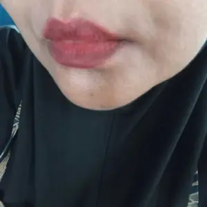 Merah yg tdk nencolok, model lipstick yg unik, lembab di bibir cocok buat bibir kering, ringan di pake