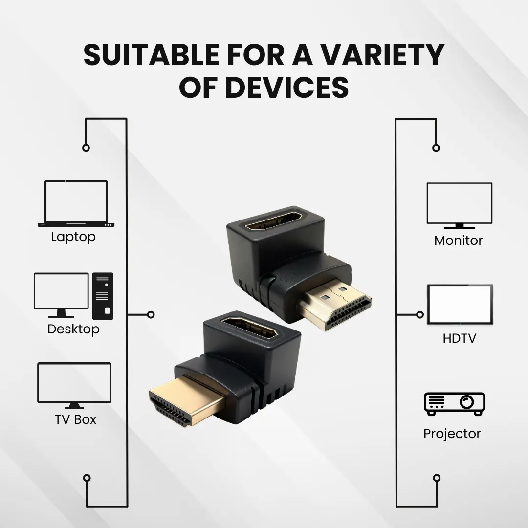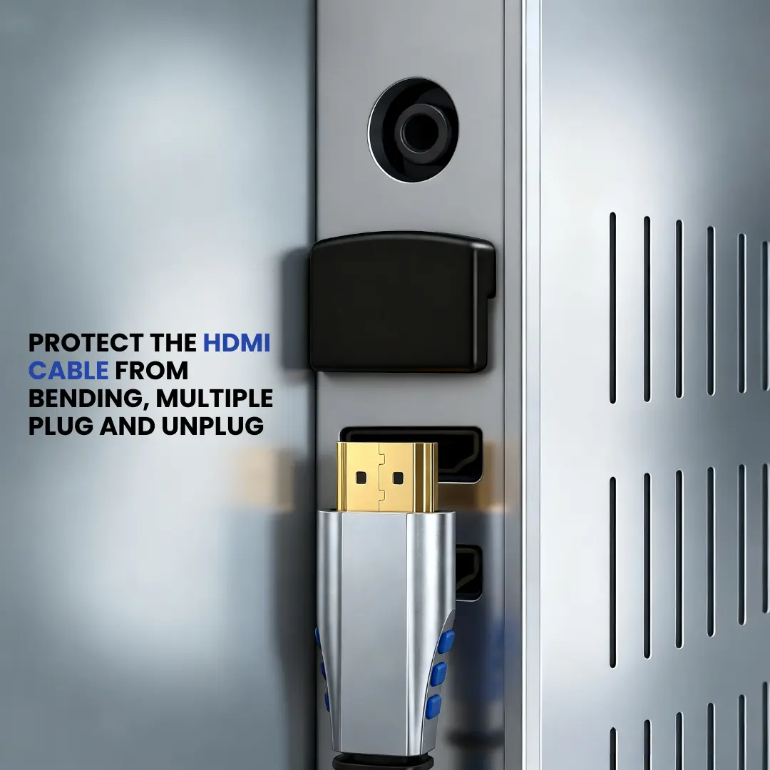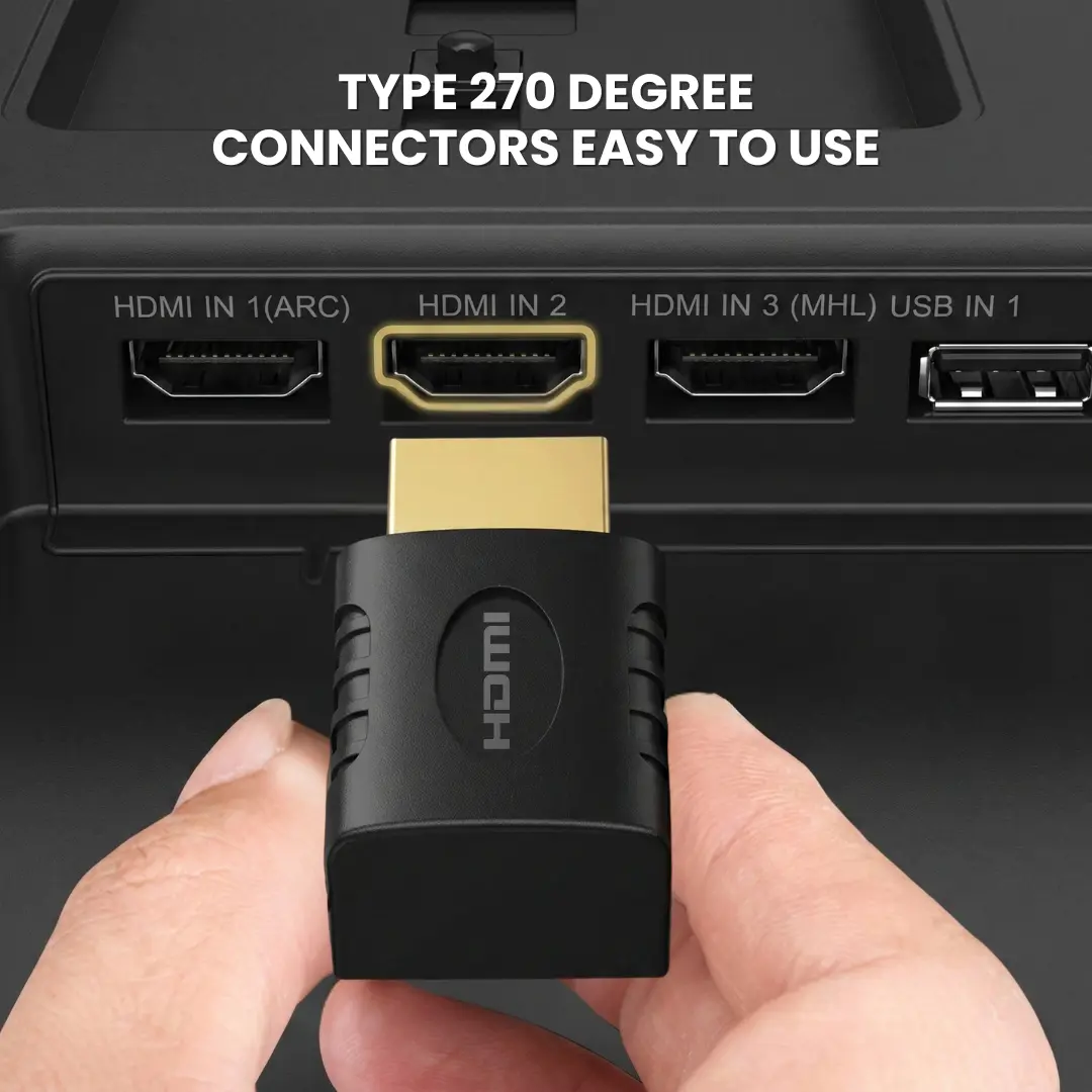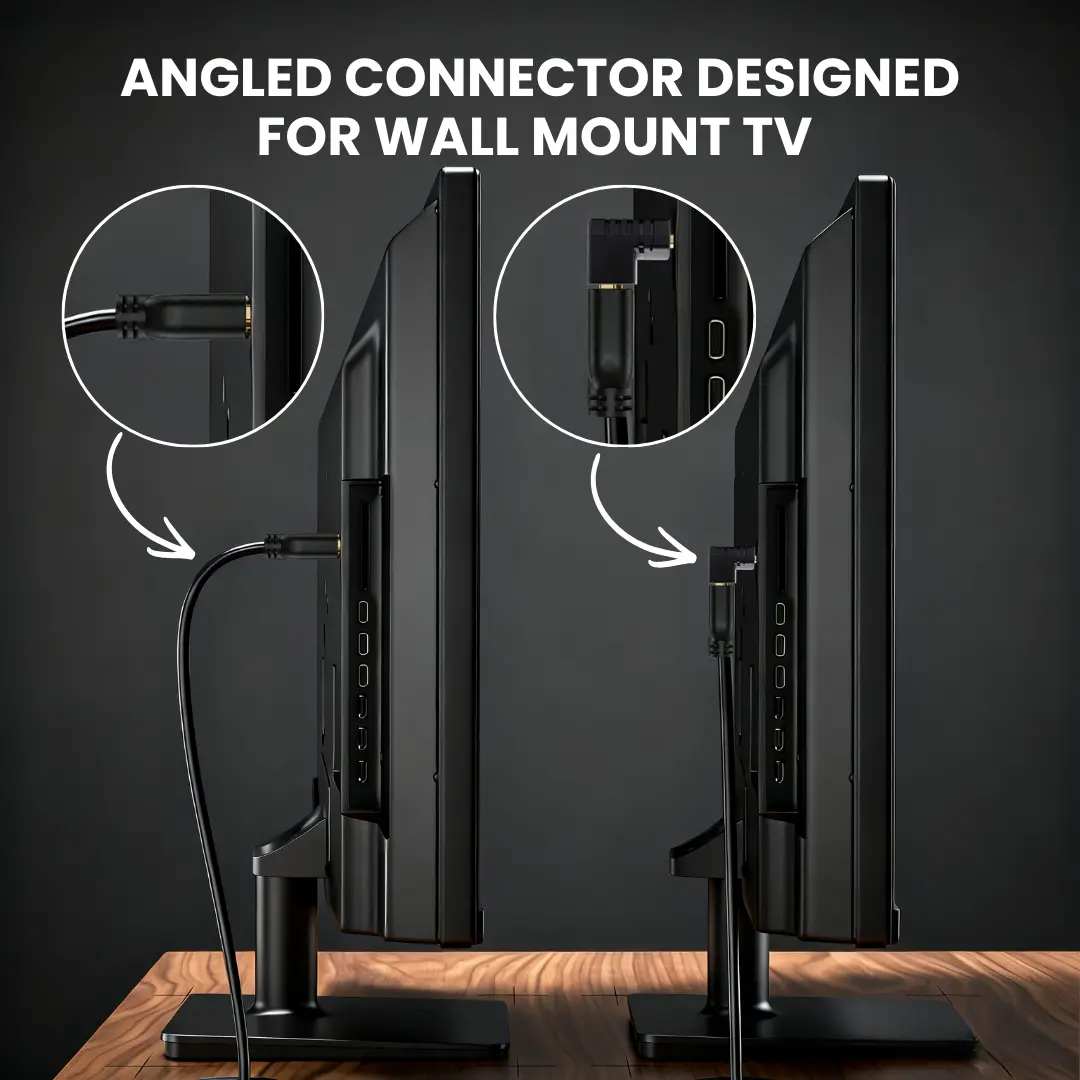 - Desain Hemat Tempat : Memudahkan pemasangan kabel HDMI di area sempit seperti belakang TV wall-mount atau monitor tanpa perlu menarik meja/bracket.