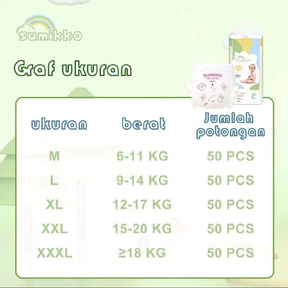 Popok celana bayi Sumikko dengan bahan lembut seperti katun yang nyaman dipakai seharian. Dirancang tipis, ringan, dan cepat menyerap agar bayi tetap kering dan bebas bergerak.