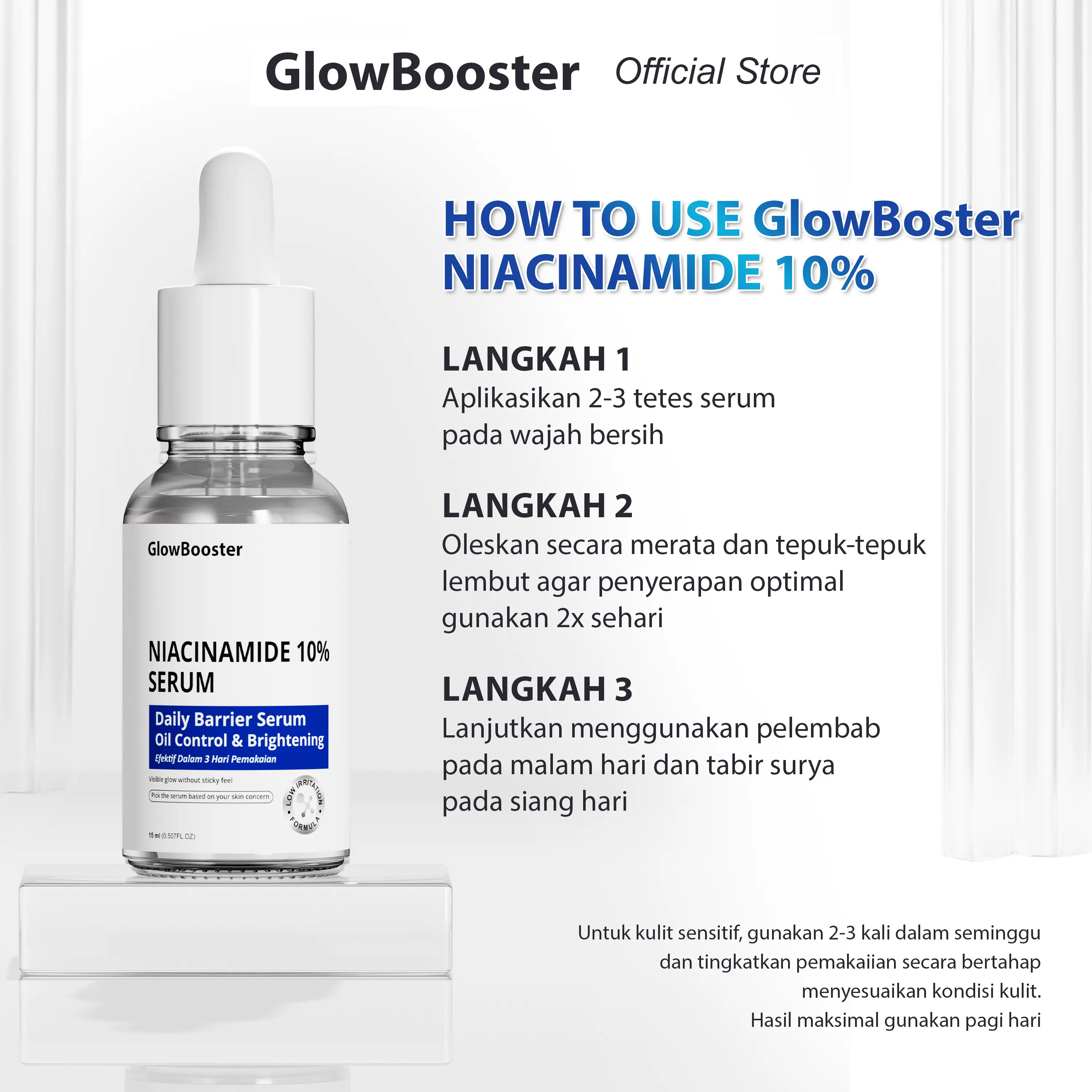Gunakan secara rutin pagi dan malam untuk hasil maksimal.