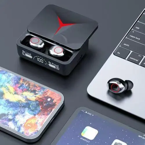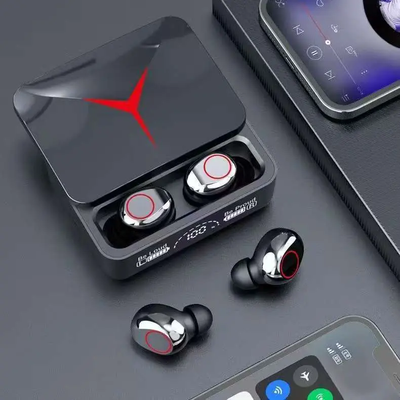 [COD] Earphone Bluetooth M90 TWS Gaming Pro Bluetooth 5.3 ENC Powerbank 1200mAh LED Display Hitam Baru