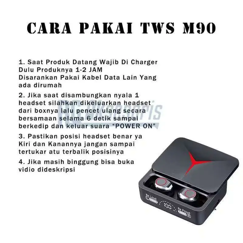 5. [COD] Earphone Bluetooth M90 TWS Gaming Pro Bluetooth 5.3 ENC Powerbank 1200mAh LED Display Hitam Baru
