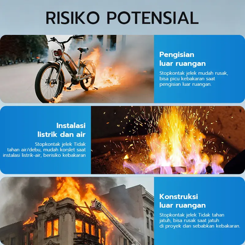 Butuh stop kontak untuk keperluan luar ruangan? Gunakan saja stop kontak ini. Ketahanannya mendapatkan rating IP44 yang artinya mampu memberikan perlindungan terhadap debu dan percikan air. Tak ketinggalan material PC flame retardant yang mampu menghambat penyebaran api atau mengurangi kemungkinan terjadinya kebakaran.