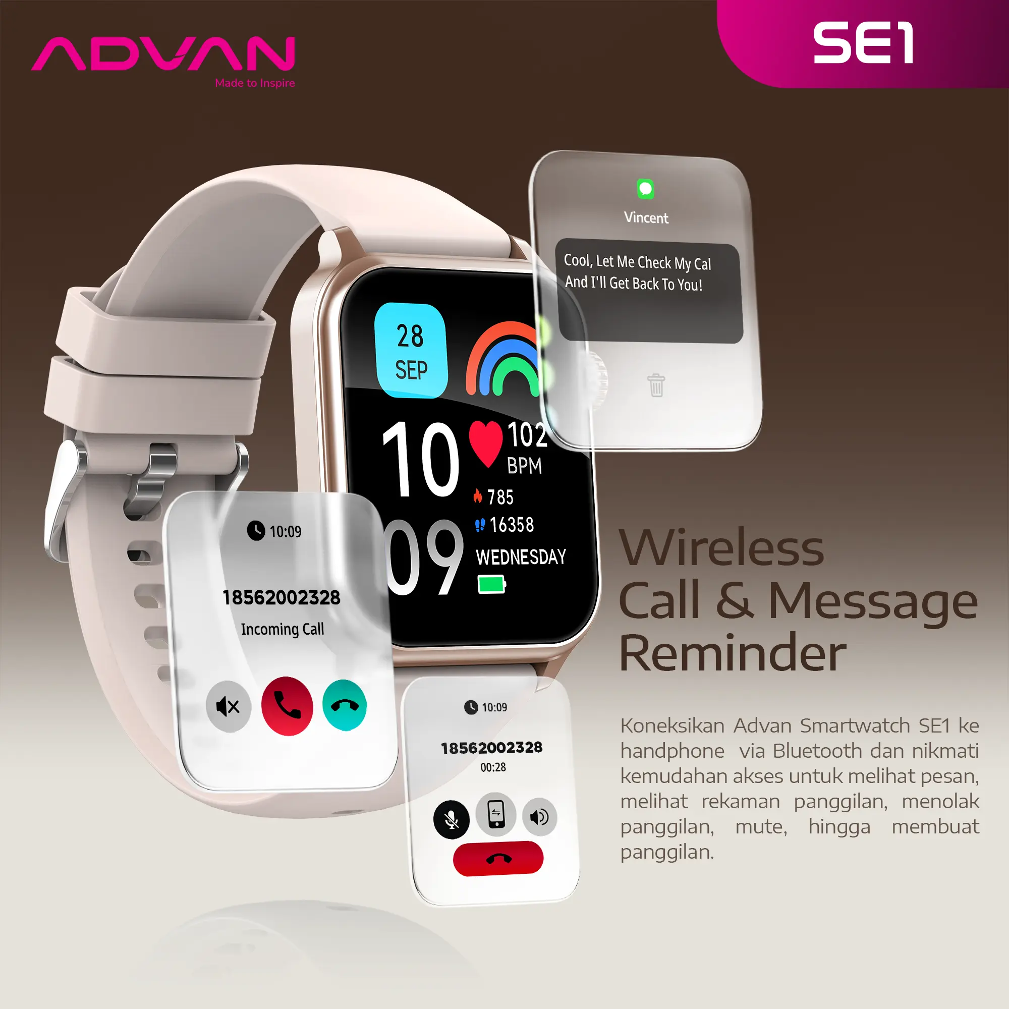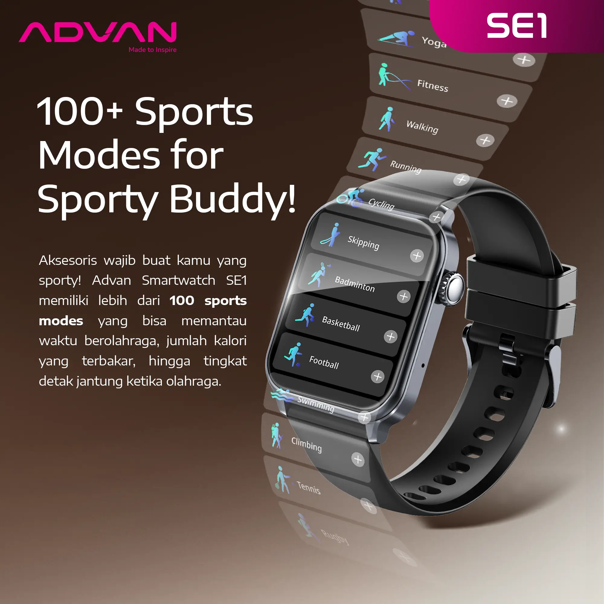 ADVAN menghadirkan smartwatch terbaru dengan desain yang modern, stylish, dan compact. ADVAN SMARTWATCH SE1, smartwatch ini dapat menemani aktifitas pengguna sehari-hari. Cocok digunakan untuk kamu yang ingin terlihat menarik dan membutuhkan fleksibilitas tinggi serta performa yang maksimal.