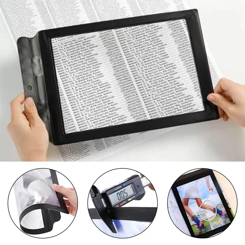 - Bagus untuk Alat Bantu Visual Pembesar Halaman Penuh, Lensa pembesar 3X sangat ideal untuk membaca dan inspeksi, sangat cocok untuk, perbaikan elektronik, dan memeriksa teks yang sangat kecil. Hadiah yang sempurna untuk orang tua dan orang-orang dengan penglihatan yang buruk