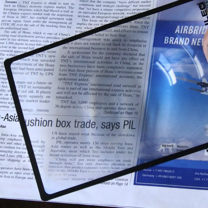 - Lembar pembesar fresnel satu halaman penuh dengan bingkai vinil hitam. Lensa Pembesar Kualitas Profesional. Ideal untuk membaca peta dan koran, memperbaiki gadget, mengukir kerajinan tangan, menjahit, merajut, dll